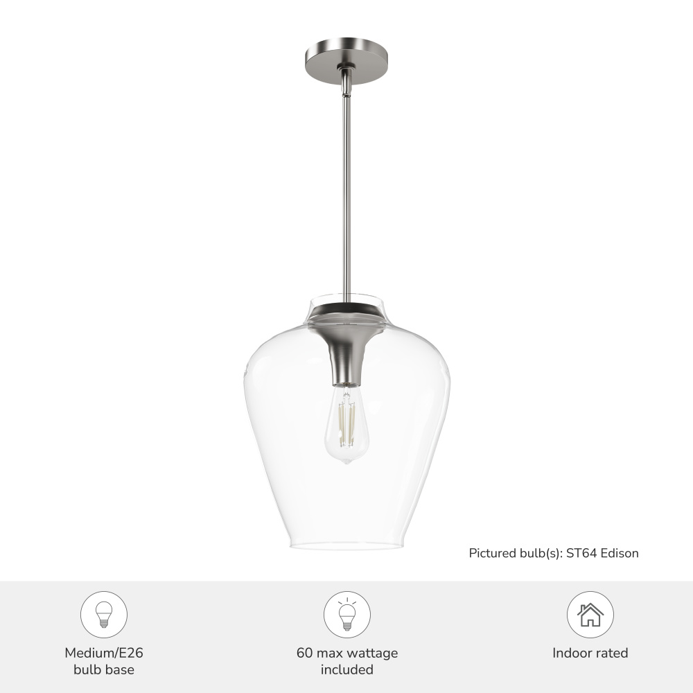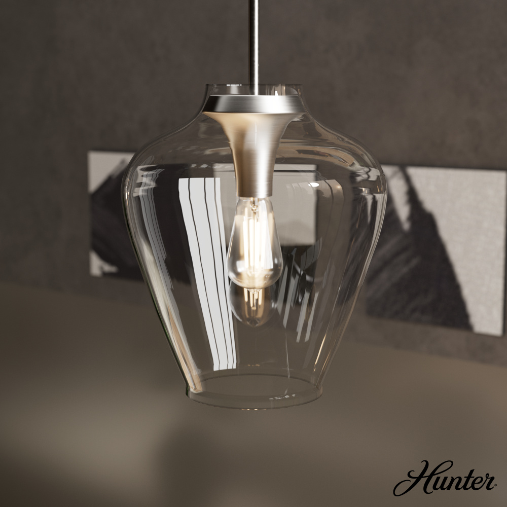 Hunter 49010 - Hunter Vidria Brushed Nickel with Clear Glass 1 Light Pendant Ceiling Light Fixture