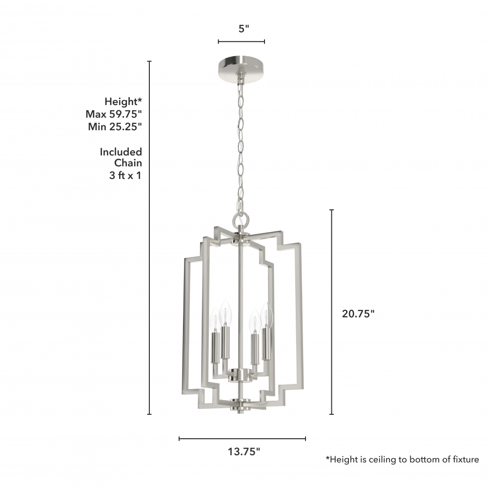 CUSTOMIZABLE HANGING OPTIONS: With the minimum required chain, the hanging length is 37 inches. When using all of the included chain, the maximum hanging length is 94 inches.