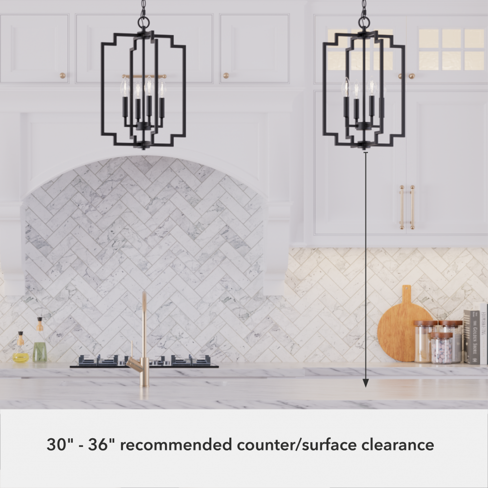 CUSTOMIZABLE HANGING OPTIONS: With the minimum required chain, the hanging length is 37 inches. When using all of the included chain, the maximum hanging length is 94 inches.