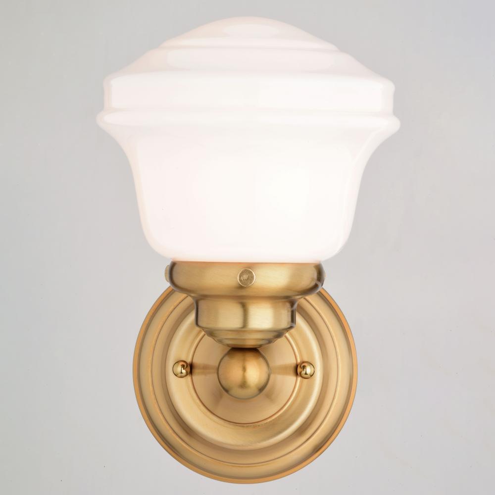 The Huntley is a timeless collection inspired by mid-century small-town aesthetics. The vintage schoolhouse white milk glass is the focal point of this design with its unique profile. Offered in multiple classic finishes and glass options, this versatile farmhouse light provides a unique accent to a variety of kitchen, dining, and bathroom settings. Coordinating pieces available to complete your look.