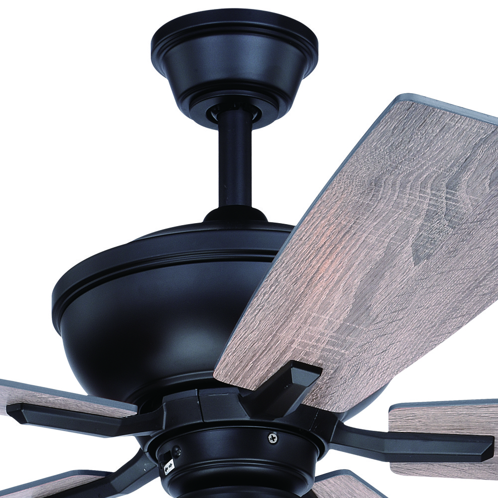 A modern rustic aesthetic best describes the new Huntley fan. A bronze or satin nickel motor is warmly met with wood fan blades. A generously sized clear seeded schoolhouse glass globe compliments the rustic design. The Huntley is a welcoming addition to any interior space of the home.