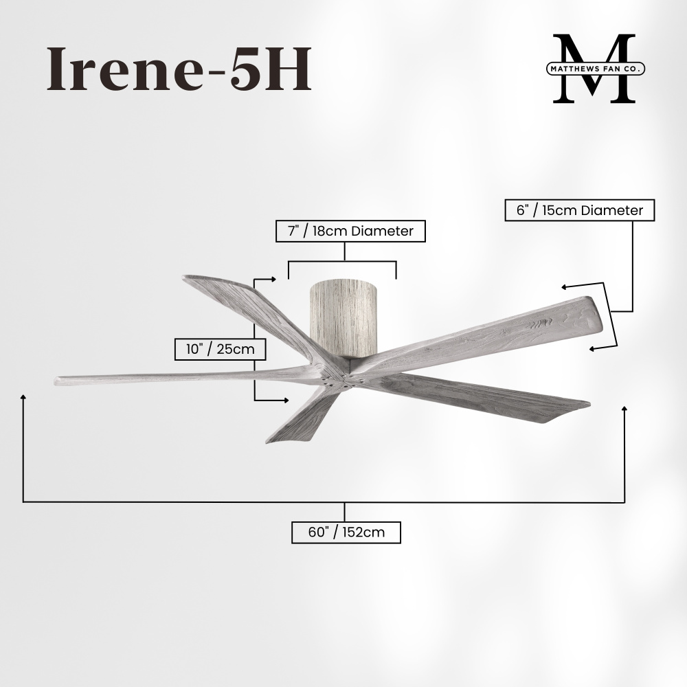 Matthews Fan Company IR5H-BW-GA-52 - Irene-5H - 52" Five Blade Flush Mount Paddle Fan - Barn Wood Tone Finish - Gray Ash Tone Blades
