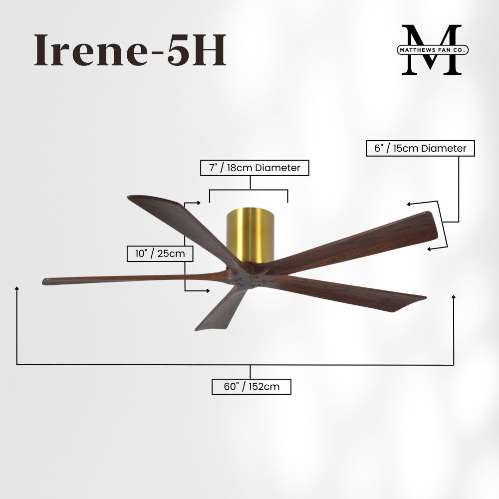 Matthews Fan Company IR5H-TB-WA-60 - Irene-5H - 60" Five Blade Flush Mount Paddle Fan - Textured Bronze Finish - Walnut Tone Blades