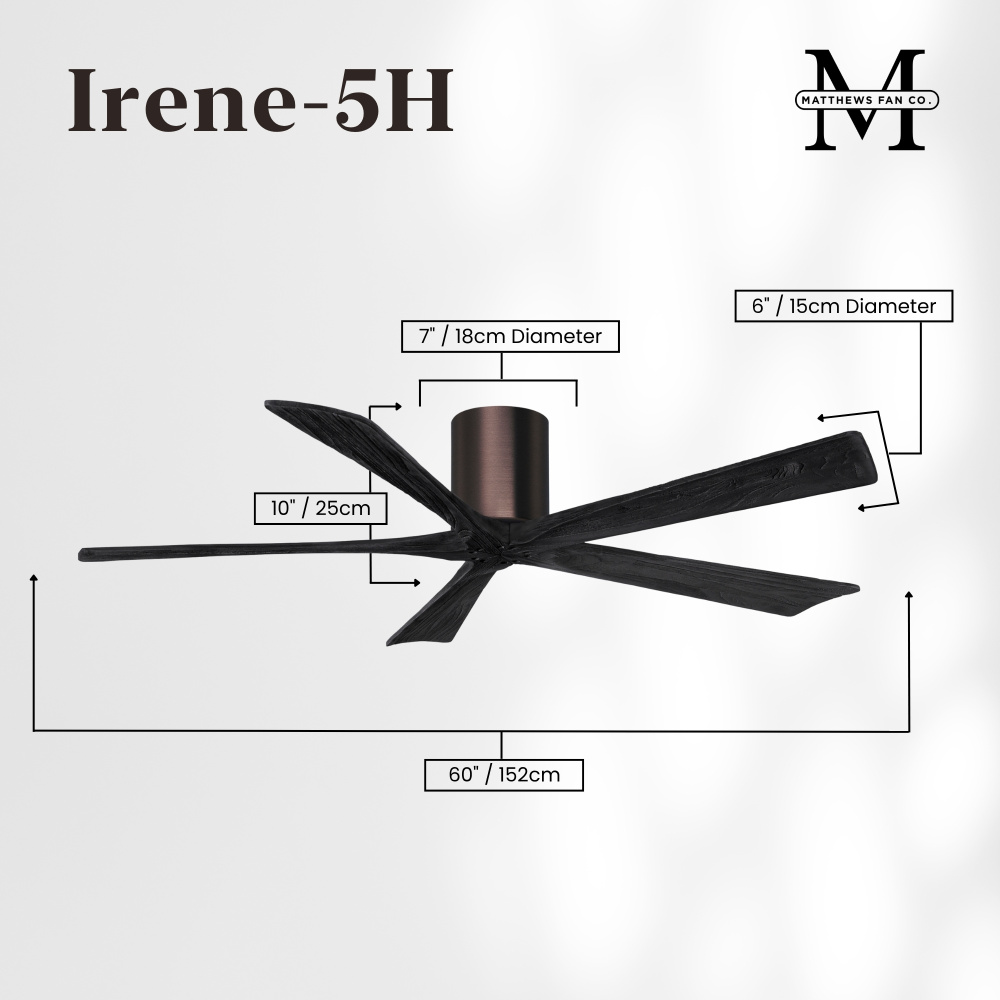 Matthews Fan Company IR5H-TB-WA-60 - Irene-5H - 60" Five Blade Flush Mount Paddle Fan - Textured Bronze Finish - Walnut Tone Blades
