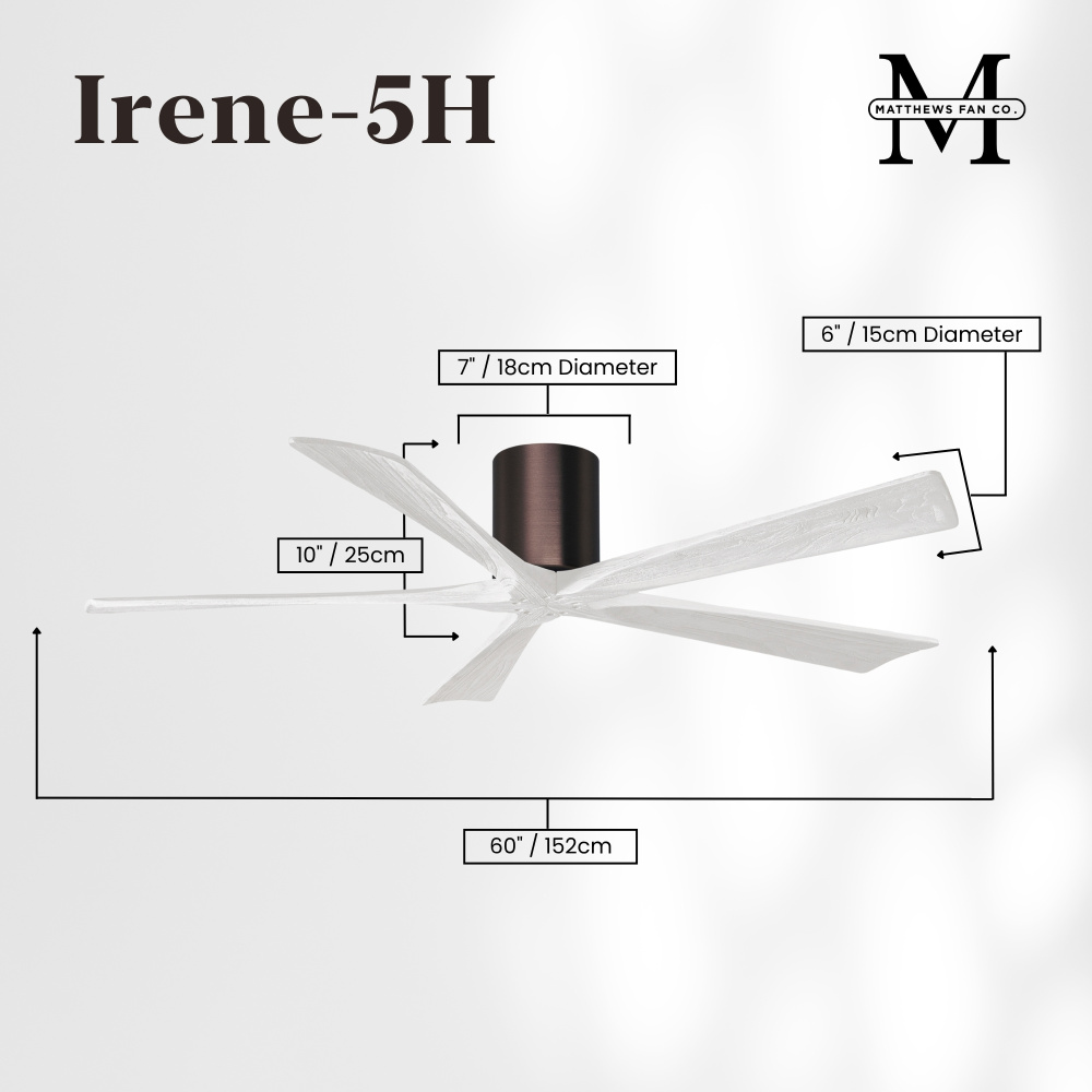 Matthews Fan Company IR5H-TB-WA-60 - Irene-5H - 60" Five Blade Flush Mount Paddle Fan - Textured Bronze Finish - Walnut Tone Blades