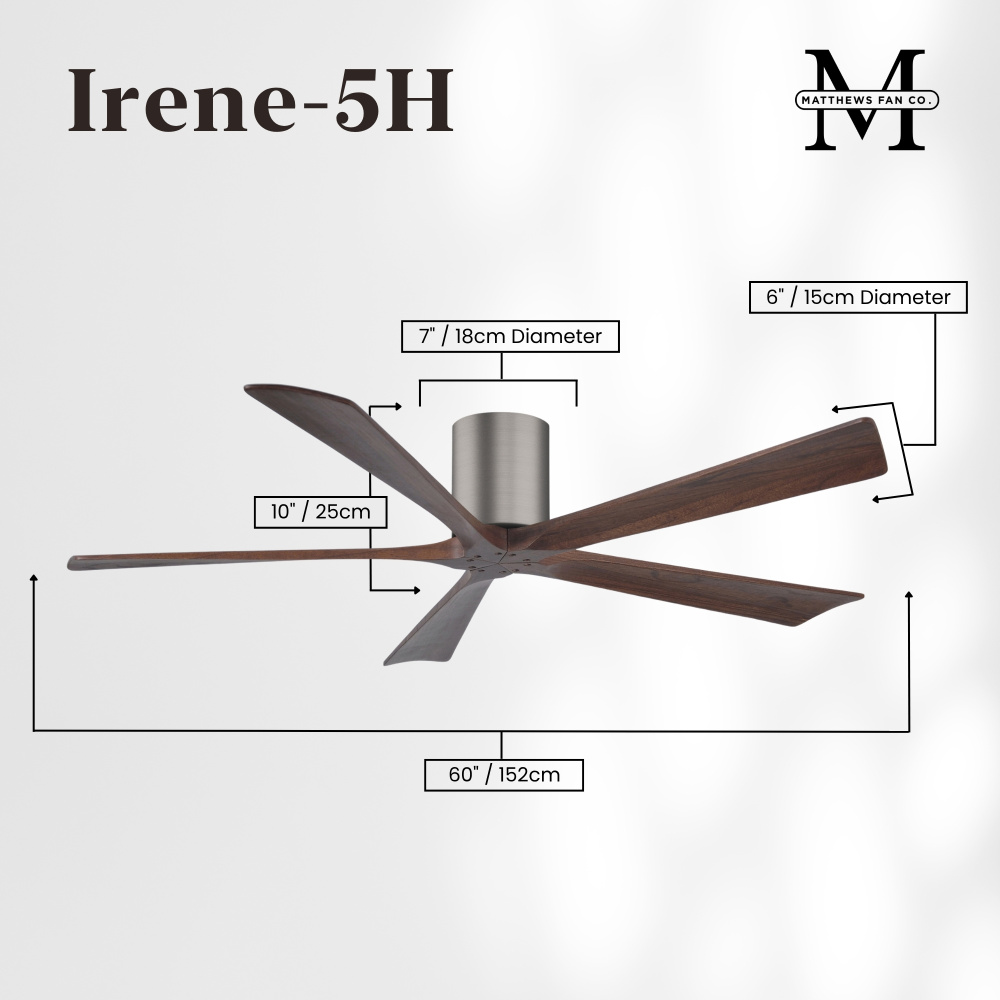 Matthews Fan Company IR5H-TB-WA-60 - Irene-5H - 60" Five Blade Flush Mount Paddle Fan - Textured Bronze Finish - Walnut Tone Blades