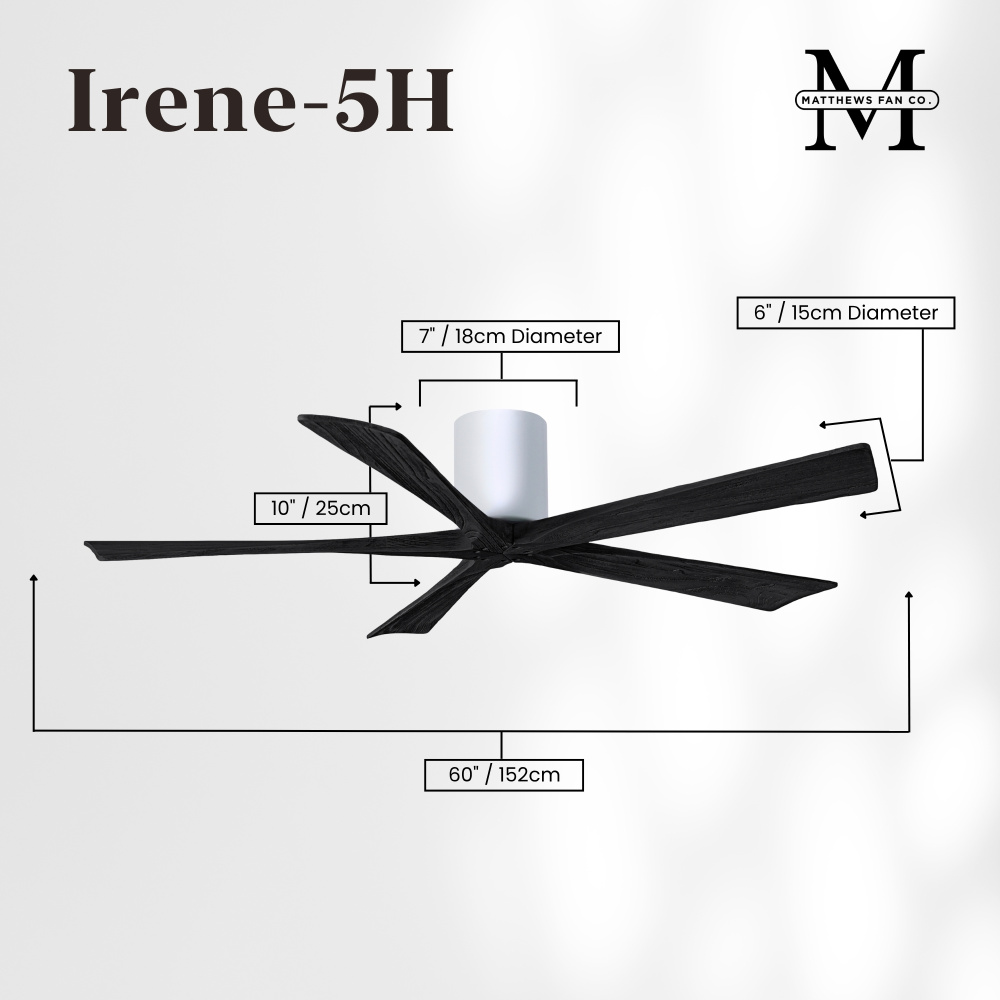 Matthews Fan Company IR5H-TB-WA-60 - Irene-5H - 60" Five Blade Flush Mount Paddle Fan - Textured Bronze Finish - Walnut Tone Blades