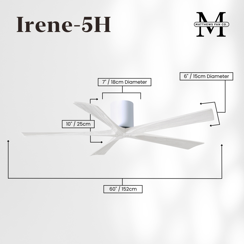 Irene-5H - 60" Five Blade Flush Mount Paddle Fan - Gloss White Finish - Matte White Blades