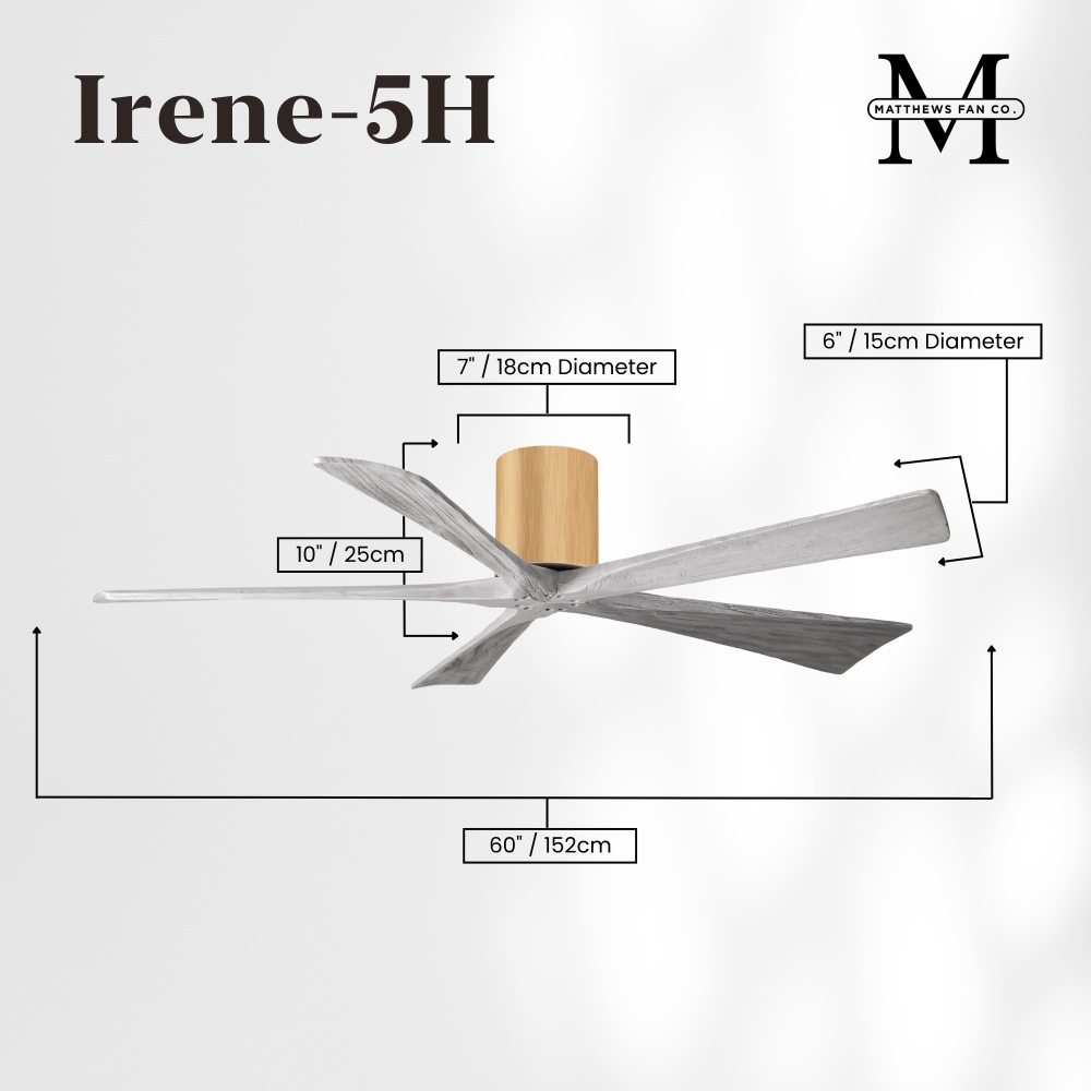 Matthews Fan Company IR5H-BW-GA-52 - Irene-5H - 52" Five Blade Flush Mount Paddle Fan - Barn Wood Tone Finish - Gray Ash Tone Blades