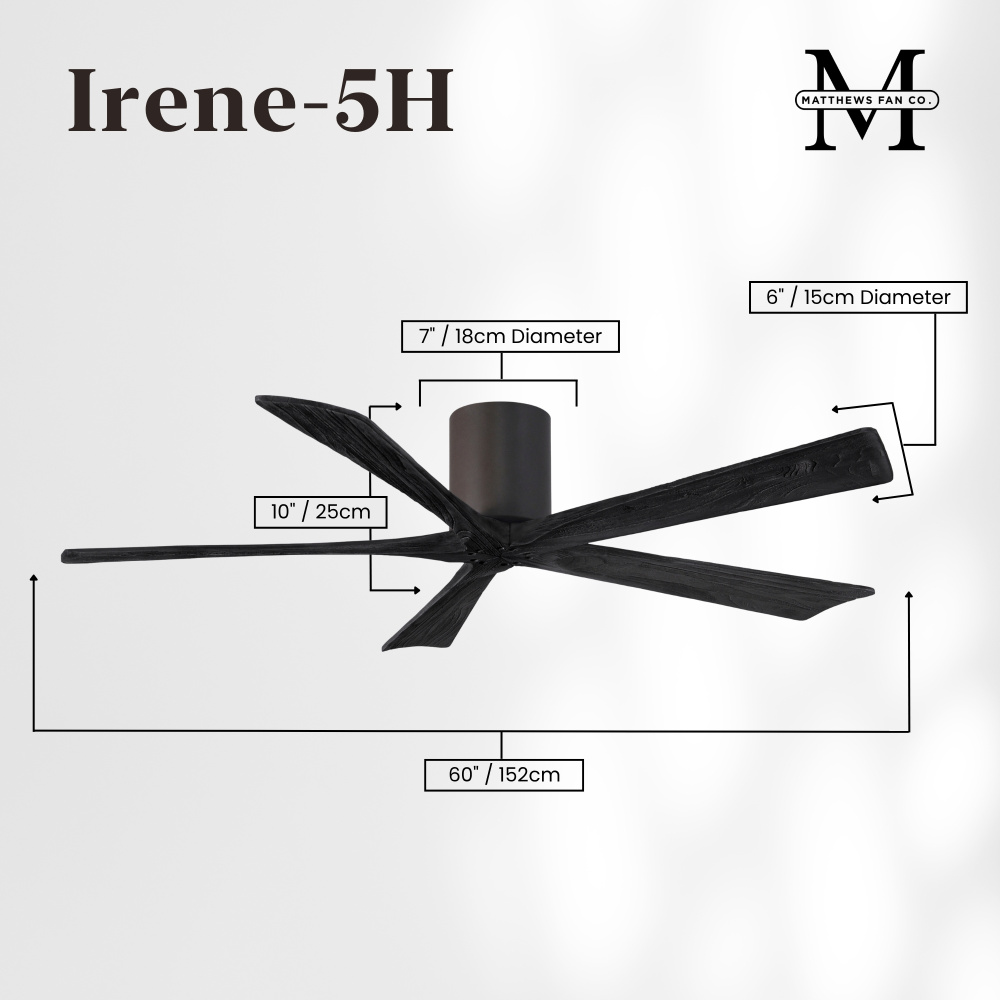 Matthews Fan Company IR5H-TB-WA-60 - Irene-5H - 60" Five Blade Flush Mount Paddle Fan - Textured Bronze Finish - Walnut Tone Blades
