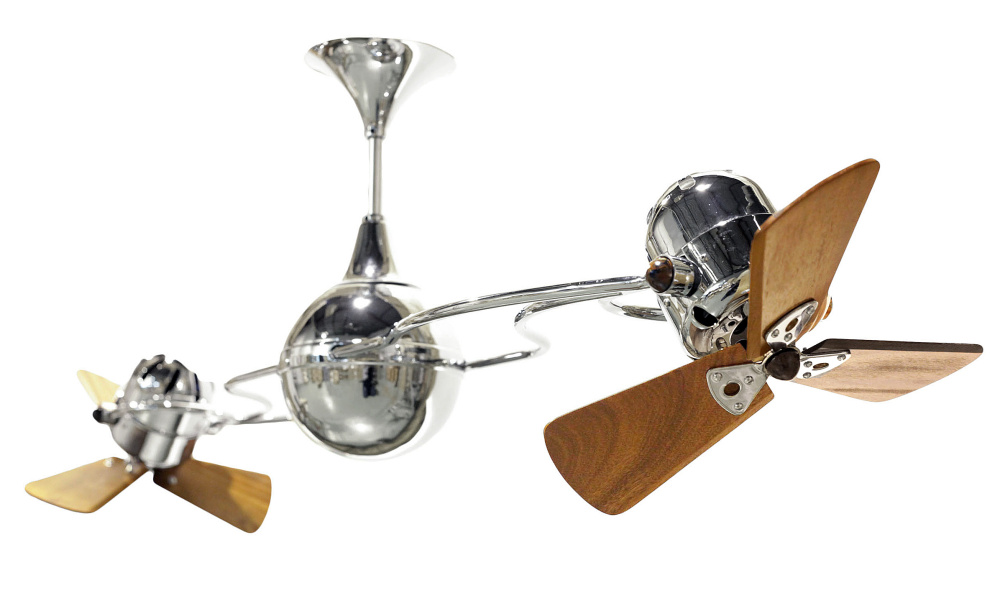 The Italo Ventania is the largest rotational fan in the Matthews Fan Co collection. Its vortex sculpted arms grasp also remarkable, side-mounted fan heads in gentle, equatorial rotation. The fan heads can be infinitely positioned in 180-degree arcs for optimum air movement; the greater the angle of the motor to the horizontal support rods (up or down), the faster the axial rotation. A slow, controlled axial rotation is achieved by both fan head position and fan blade speed.