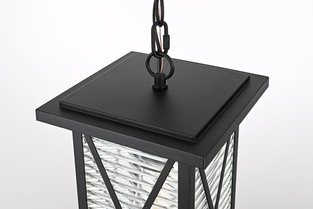This outdoor pendant light blends classic lantern styling with modern craftsmanship, featuring a rectangular metal frame, fluted glass panels, and crisscross detailing. The clear fluted glass creates a rippled effect, diffusing the light for a balanced glow while maintaining brightness. Crafted from iron and aluminum, the sturdy black-finished frame ensures long-term durability in outdoor conditions. The adjustable 39-inch chain offers a hanging height between 18 and 56 inches, making it adaptable for porches, patios, and covered entryways. The open-bottom design allows for quick and hassle-free bulb changes, while the fixture supports a single medium-base E26 bulb (40W max, not included). Dimmable and ETL damp Rated, this pendant light brings a structured and refined presence to exterior spaces. Built with marine-grade, corrosion-resistant aluminum, this sconce withstands coastal conditions for long-lasting durability.