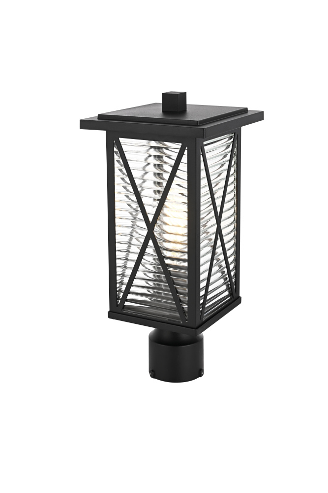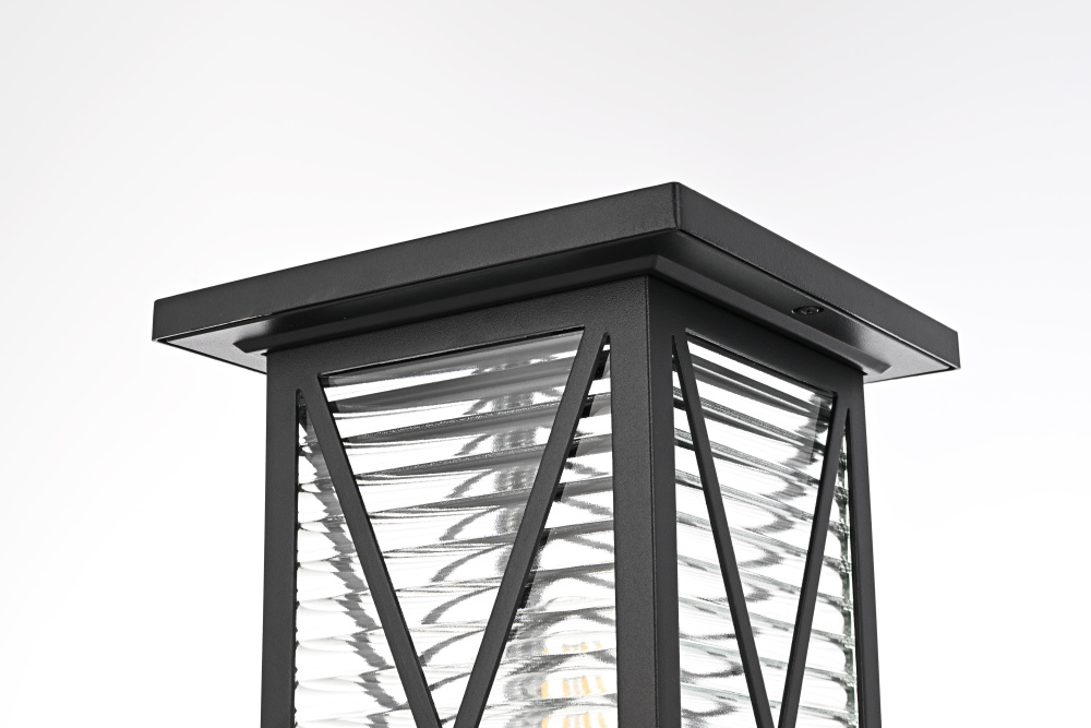 This outdoor post light blends classic lantern styling with modern craftsmanship, featuring a rectangular metal frame, fluted glass panels, and crisscross detailing. The clear fluted glass creates a rippled effect, diffusing the light for a balanced glow while maintaining brightness. Crafted from iron and aluminum, the sturdy black-finished frame ensures long-term durability in outdoor conditions. The 3.23-inch wide base fits most standard post light poles (pole not included), making installation straightforward. This fixture is dimmable and requires one medium-base E26 bulb (not included), offering flexibility in brightness and bulb selection. ETL Wet Rated, this pendant light brings a structured and refined presence to exterior spaces. Built with marine-grade, corrosion-resistant aluminum, this sconce withstands coastal conditions for long-lasting durability.