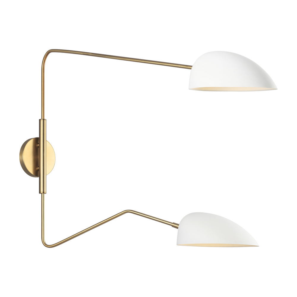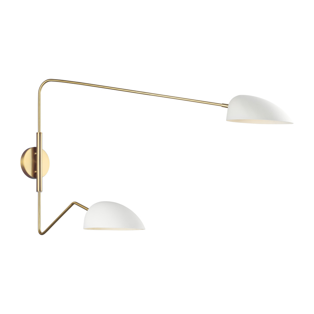 The Jane two light swing arm lamp in matte white offers shadow-free lighting in your powder room, spa, or master bath room. The retro-inspired Jane collection features a luxe two-tone finish of Burnished Brass with Midnight Black or Matte White accents. Adjustable shades on Jane chandeliers enable illumination that perfectly suits your space. Elongated arms and soft curves add dimension and drama to each fixture.