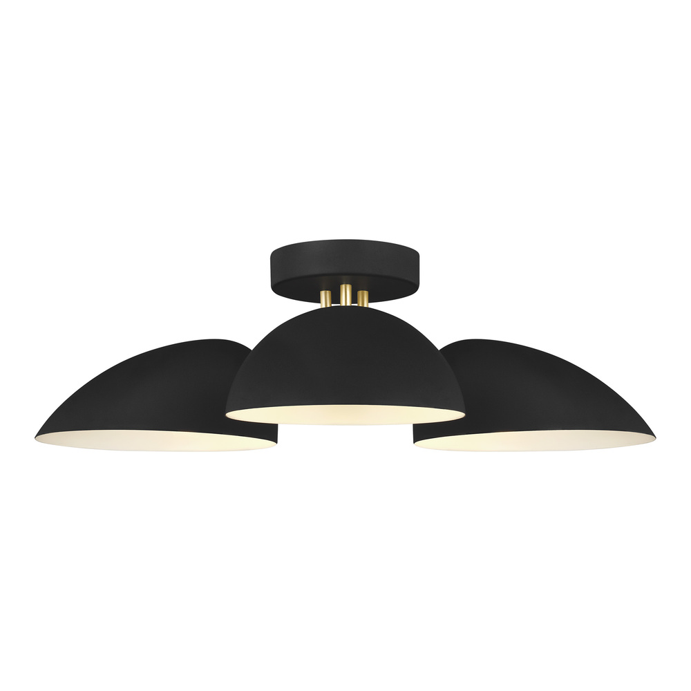 The Jane three light flush mount fixture in midnight black enhances the beauty of your home with ample light and style to match today's trends. The retro-inspired Jane collection features a luxe two-tone finish of Burnished Brass with Midnight Black or Matte White accents. Adjustable shades on Jane chandeliers enable illumination that perfectly suits your space. Elongated arms and soft curves add dimension and drama to each fixture.
