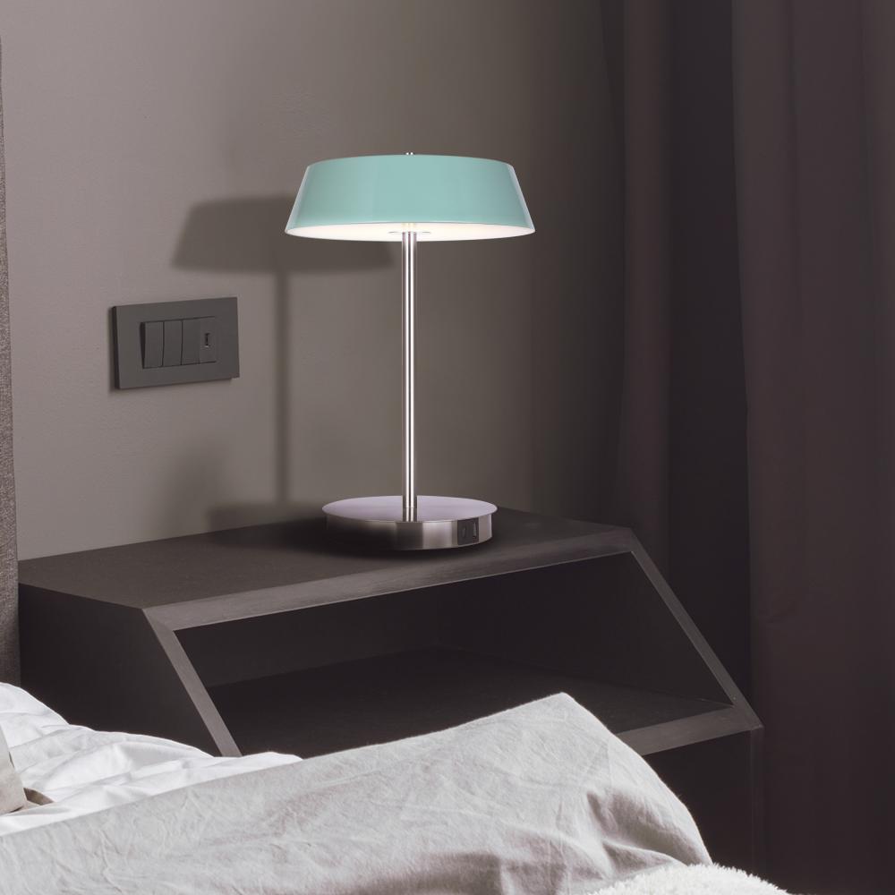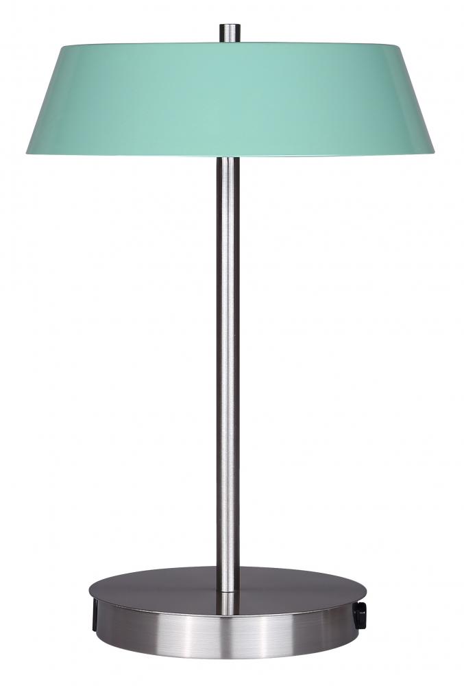 Jessa 14 in. Integrated LED Brushed Nickel Table Lamp with Teal Metal Shade, On/Off Touch, and USB C