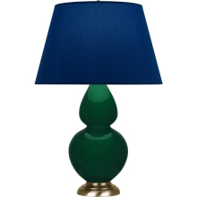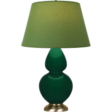 Jungle Glazed Ceramic with Antique Natural Brass Finished Accents Double Gourd Table Lamp with Pearl Dupioni Fabric Shade - Our Double Gourd collection features a simple but gracefully curving silhouette. Available in a wide array of vibrant colors and several different base finishes.