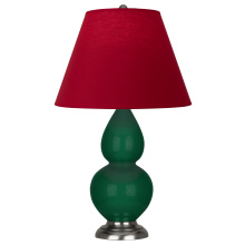 Jungle Glazed Ceramic with Antique Silver Finished Accents Small Double Gourd Accent Lamp with Pearl Dupioni Fabric Shade - Our Double Gourd collection features a simple but gracefully curving silhouette. Available in a wide array of vibrant colors and several different base finishes.