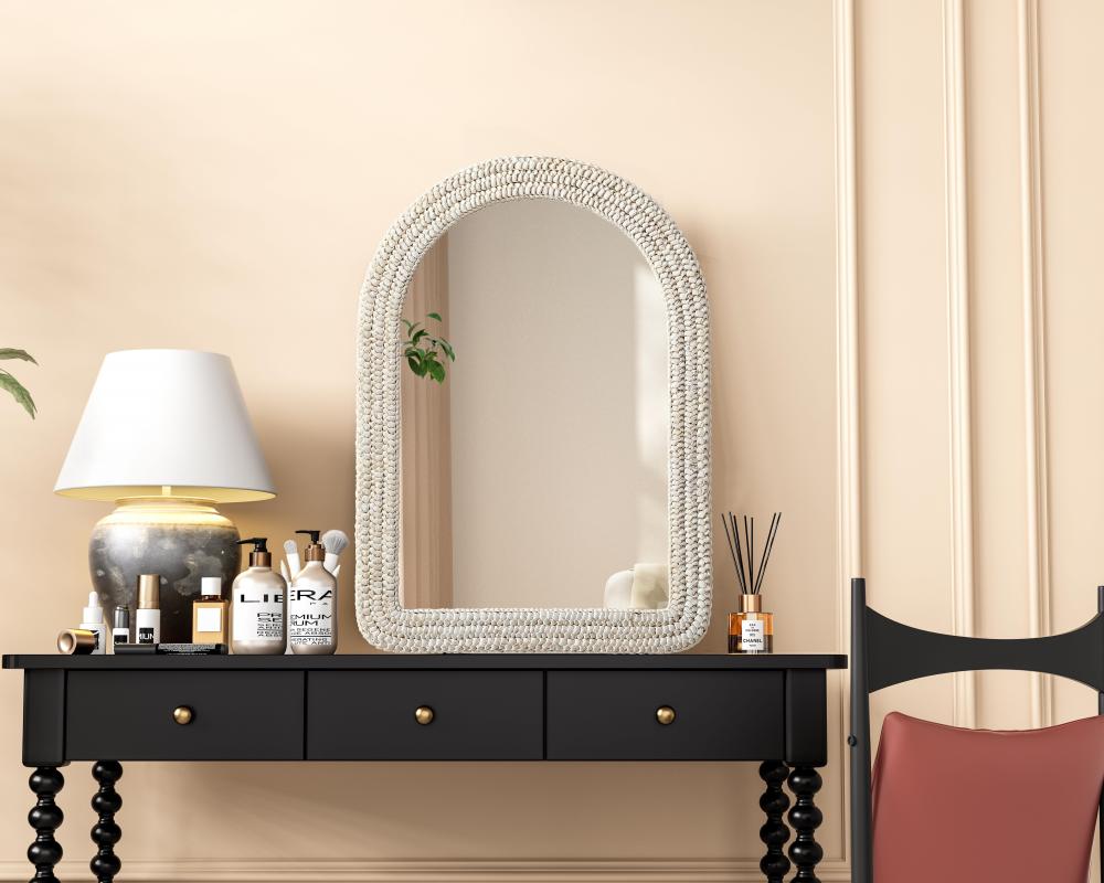 Transform your space with this stunning wall mirror that blends natural charm with functional design. Crafted from MDF, cornhusk, and high-quality mirror, the textured woven frame brings warmth and character to your decor. Whether you're decorating a hallway, living room, or bedroom, this mirror comes in a variety of shapes—including rectangle, round, oval, and arch—along with multiple size options to perfectly suit your needs. Designed for versatility, the mirror features two inset metal hangers, allowing you to mount it vertically with ease. Its reflective surface not only adds a touch of brightness but also creates the illusion of a larger room, enhancing your space. with durable materials and ready-to-hang hardware, this mirror is as practical as it is stylish, making it a must-have piece for any home.