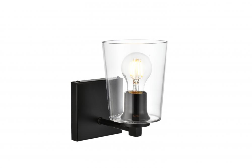 Defined by a sleek metal arm extends to suspend the clear cylinder glass shade. A contemporary stunner, it shows off the straight line details from the backplate and the streamline thin metal arm. Compatible with dimmers, so you'll have the right amount of light in any given time of the day. Completely versatile, you can place this wall light as an uplight or downlight. Rated for use in damp locations, this will work perfectly over a vanity in your bathroom.