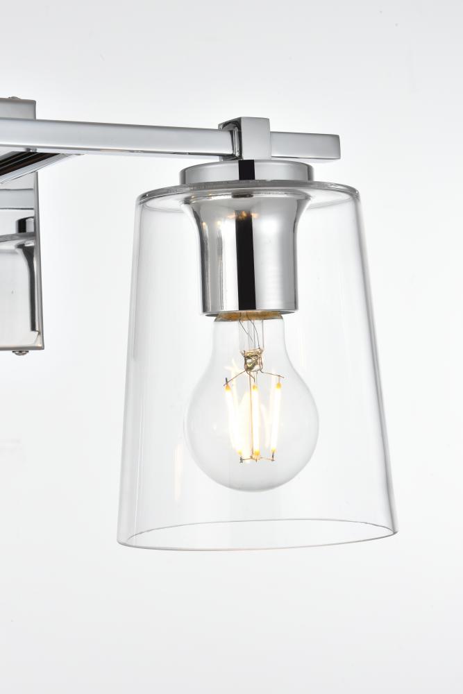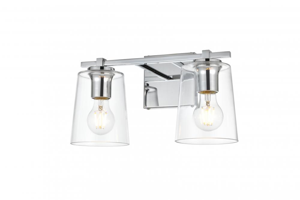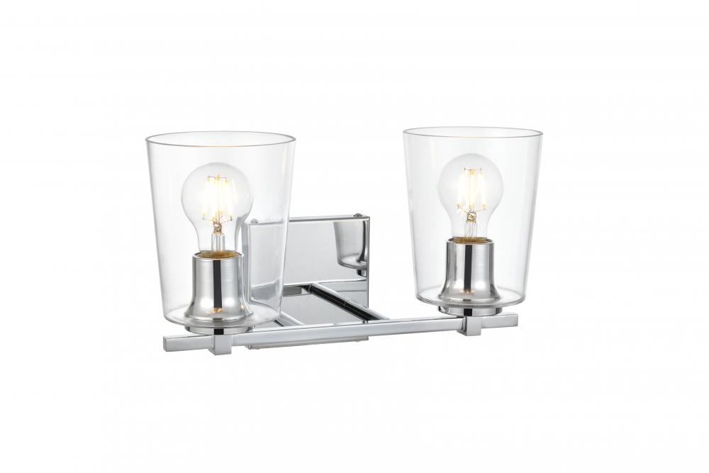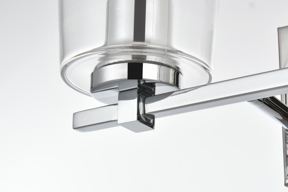 Defined by a sleek metal arm extends to suspend the clear cylinder glass shade. A contemporary stunner, it shows off the straight line details from the backplate and the streamline thin metal arm. Compatible with dimmers, so you'll have the right amount of light in any given time of the day. Completely versatile, you can place this wall light as an uplight or downlight. Rated for use in damp locations, this will work perfectly over a vanity in your bathroom.