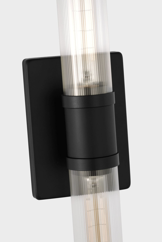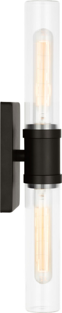Sleek and modern, this 2-Light bath series pairs a square backplate With tubular clear fluted glass shade. The Keaton two light vanity fixture provides abundant light for your bath vanity, while adding a layer of today's style to your interior design.