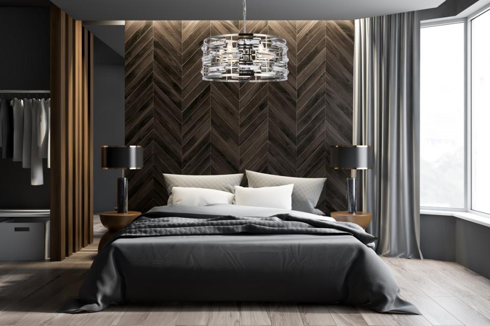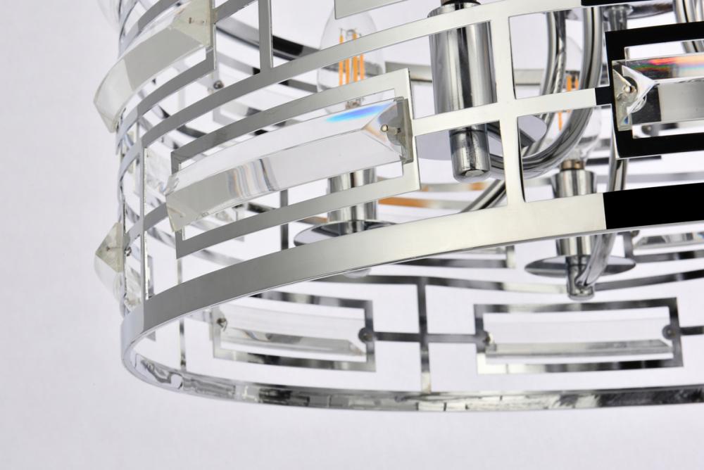 Clear rectangular crystals reflect the soft glow of candelabra bulbs