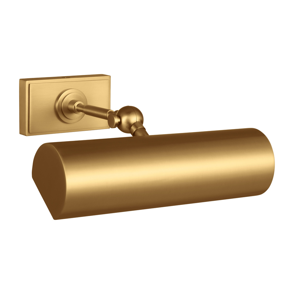 The Kenyon 10" Picture Light by Chapman & Myers were designed to be highly versatile in their application, at home in any interior. They have classic half round pharmacy shades which are mounted to a cylindrical metal stem with a differentiated stepped detailing. The picture lights have an architecturally inspired medallions where the arms mount to the rectangular backplate. Kenyon has a smooth clean metal shade that will bring the perfect light to your works of art. Available finishes include Aged Iron and Burnished Brass.