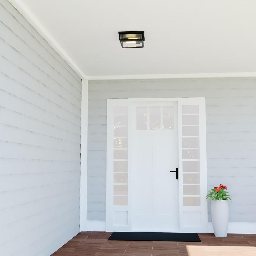 Modern clear glass panels frame the Kinzie for a clean, contemporary feel. Finished in black, the Kinzie creates a bold but understated look perfect for highlighting your space. Combine that with vintage Edison style filament bulbs to complete the look. This ceiling light is ideal for your porch, entryway, or any other indoor or outdoor area of your home.