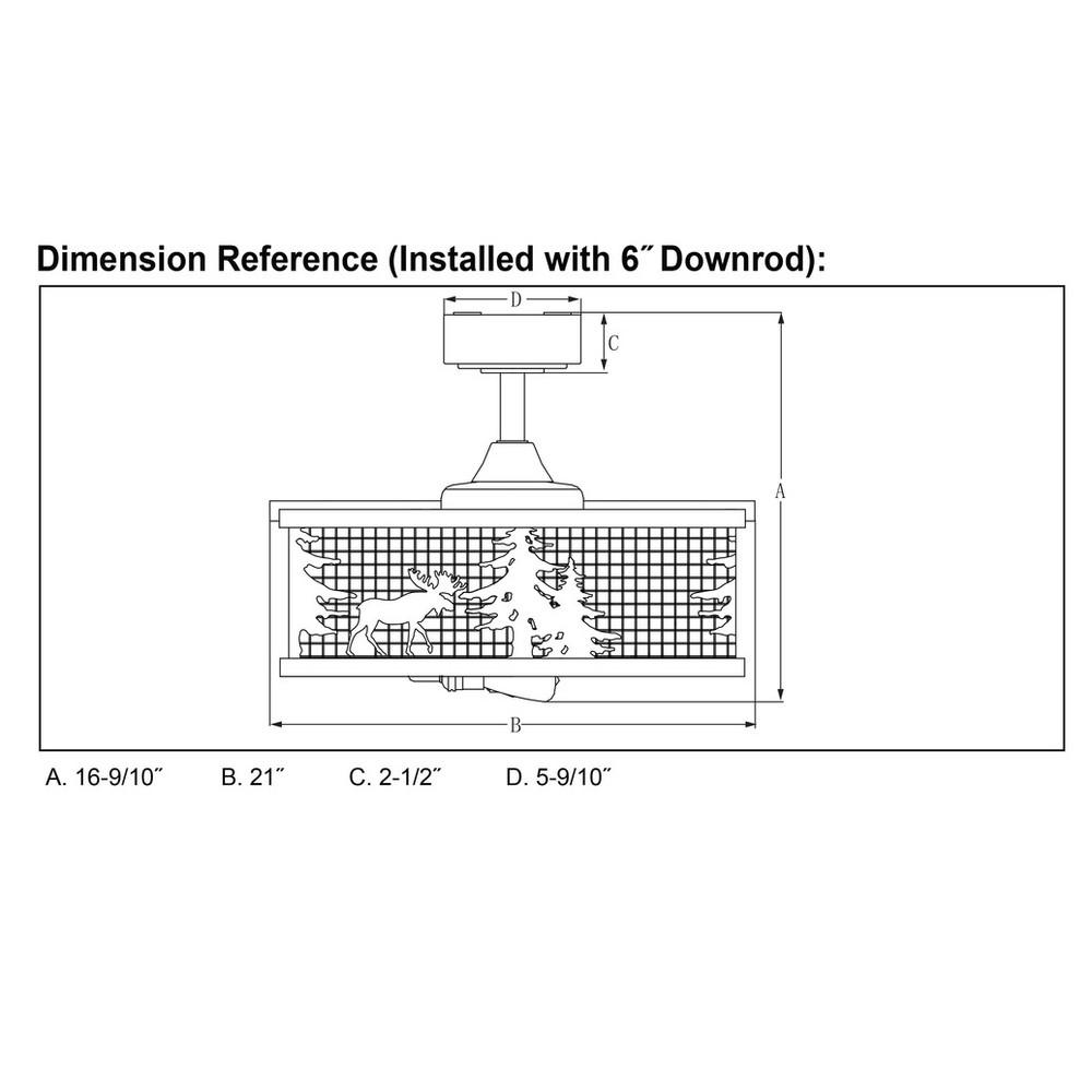 Get wild with this indoor-outdoor drum style ceiling fan called Kodiak. The pairing of the black and burnished teak finishes enhance the on-trend metal cage perfectly. Capture your love of nature with pine tree and moose silhouettes. It is a great choice for a vacation lodge, cabin or suburban home and will complement a variety of home styles: anywhere you want to bring in an element of nature. The included LED bulbs provides energy saving, low maintenance and long-lasting performance. Rated for damp locations, ideal for your covered porch, family room, or any other area of your home.