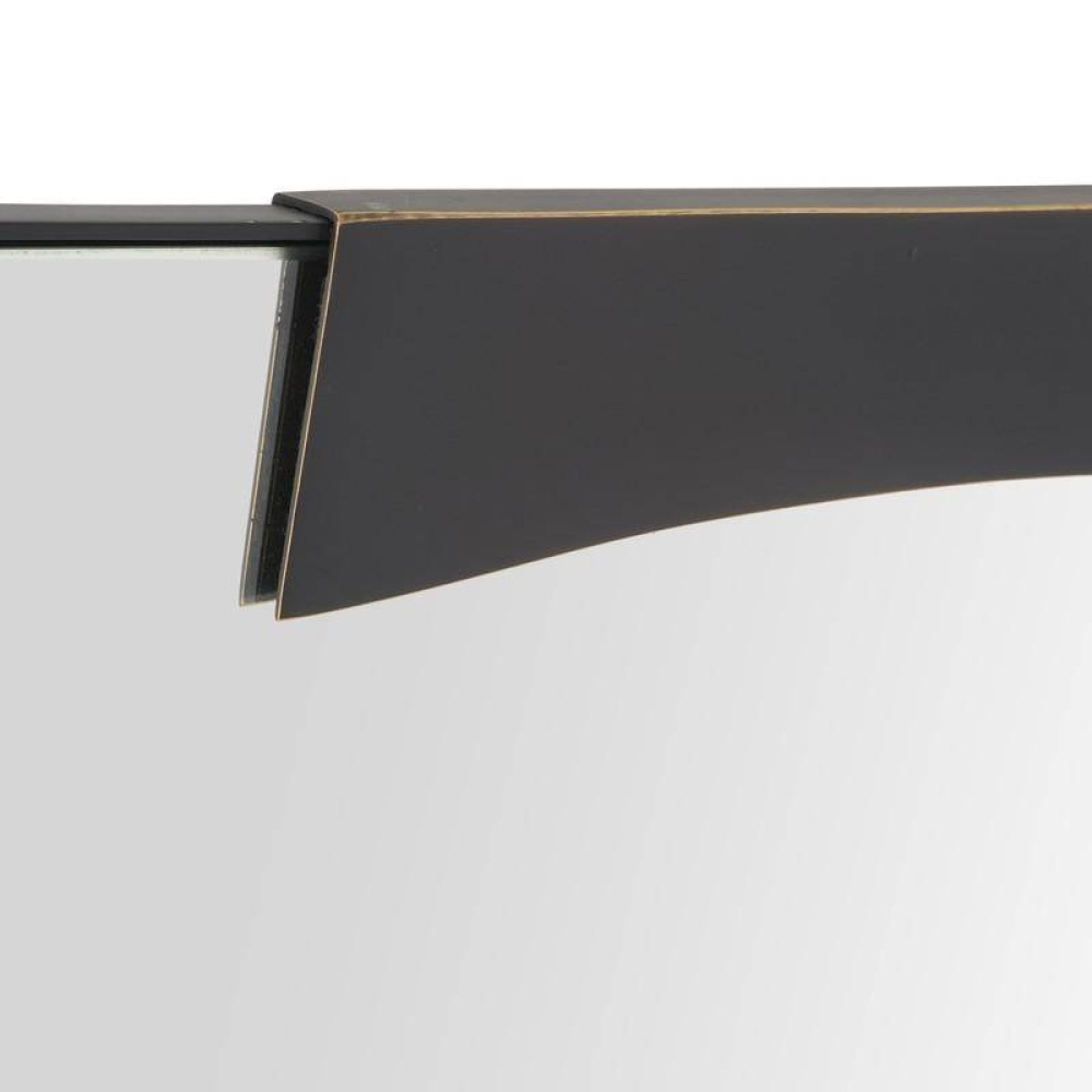 Elegantly modern, the Kris Rectangular Mirror displays a refined geometric design. Gracefully formed brass clasps hold this mirror top and bottom, all in a bronze finish over a blackened iron frame. The raised design creates depth and adds chic sophistication. Security cleat hanging hardware included and allows for vertical or horizontal display.