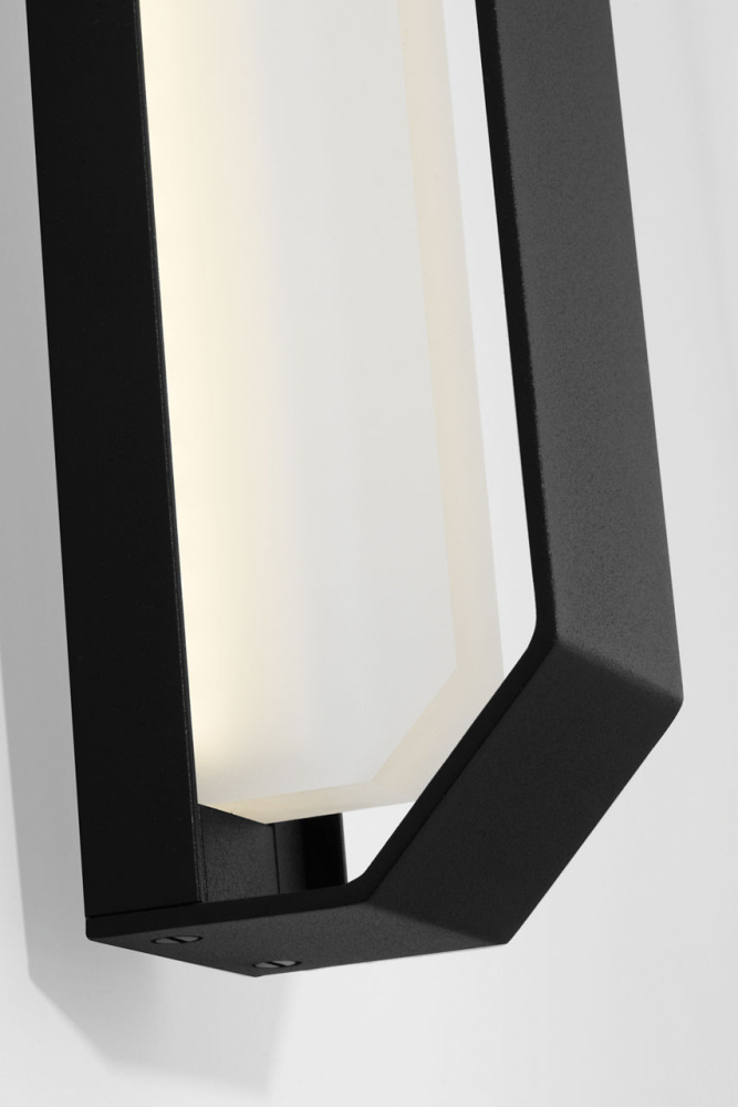 Defined by a bold, faceted silhouette, the Lakemont 34" Outdoor Wall light brings a sculptural presence to exterior spaces. Its sleek linear frame is paired with a thick frosted acrylic light guide that diffuses illumination with smooth, even glow. Equipped with selectable CCT technology (2700K–5000K), it allows for customizable light tone, from warm and inviting to crisp and contemporary. Ideal for entryways, patios, and exterior walls.