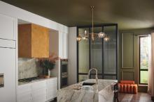 Artfully combining unexpected materials and innovative technology, Oberon's ribbed stems and articulating arms in Heritage Brass allow for a tailored, transitional silhouette. Delicate swirls detail spherical shades in amber, clear, and smoke glass.