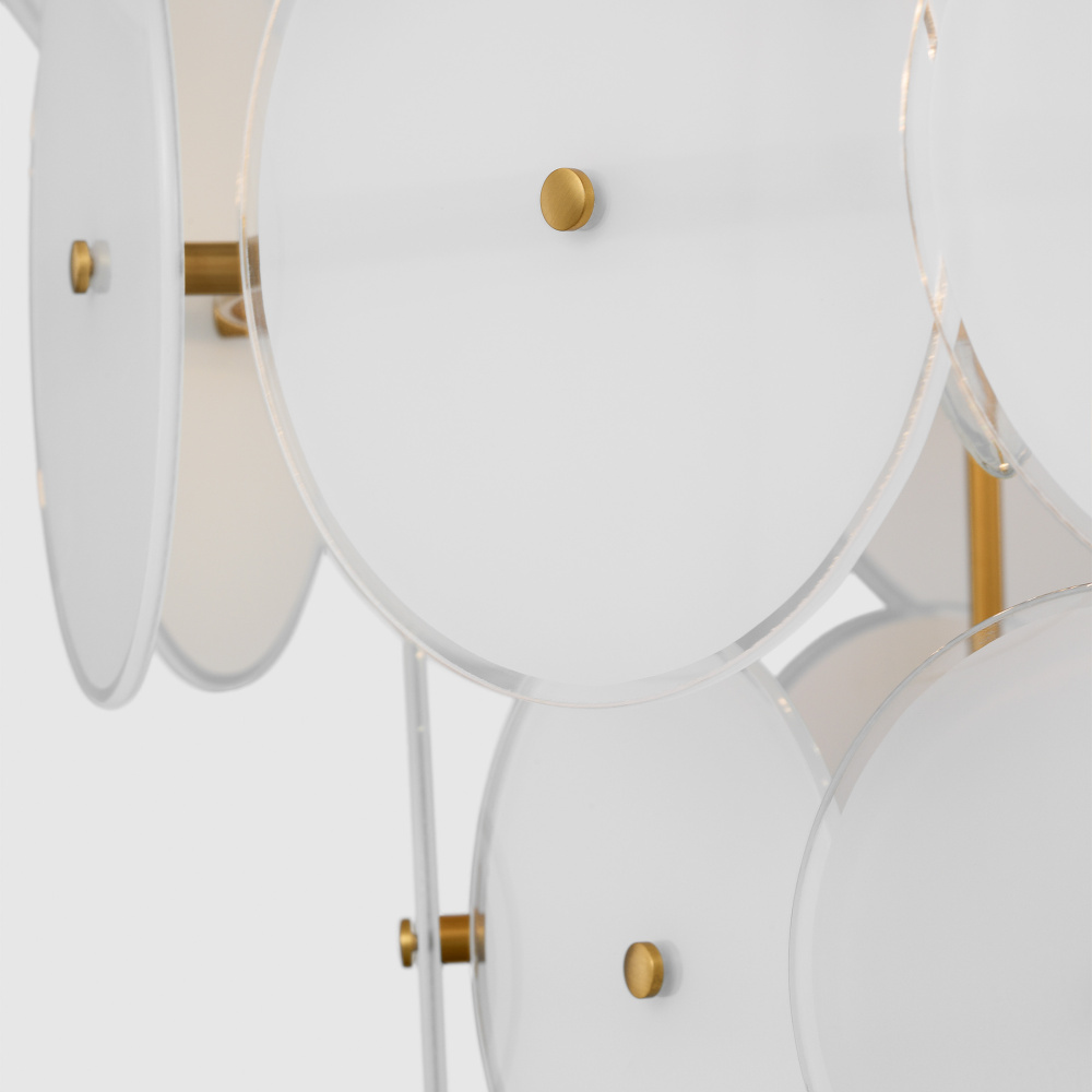 Beautiful glass discs cascade down the fixture to give the Emery series a playful tone. Designed to captivate and illuminate with its timeless elegance and refined sophistication. Inspired by the iconic Kate Spade (AW vs. kate spade new york) brand, the Emery series is a perfect blend of luxury, style, and functionality, adding a touch of glamour to any room in your home.
