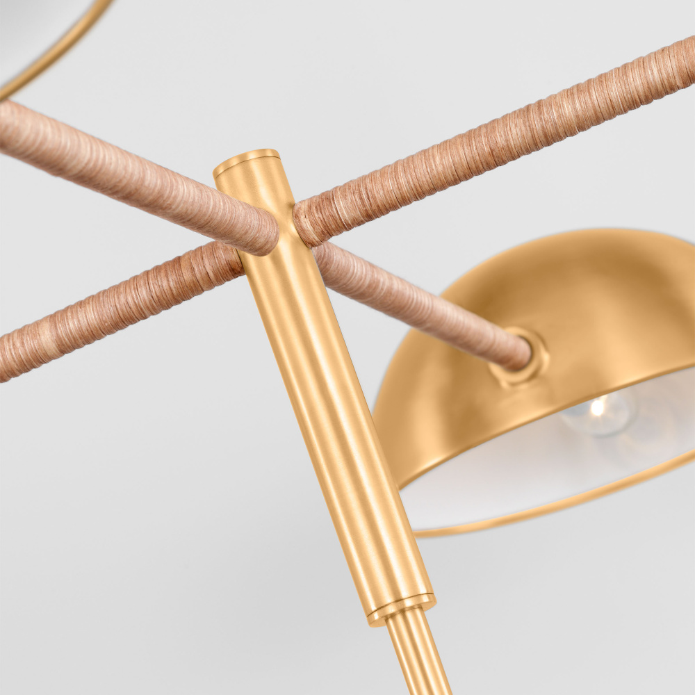 The Balleroy brass lighting series Christiane Lemieux is a true embodiment of design and style. This collection boasts a perfect dome shape designed for timeless beauty, each piece meticulously crafted to captivate and illuminate your space. What sets this collection apart is the unique incorporation of rattan-wrapped arms and stems, adding a touch of organic detail and warmth to the luxurious brass finish. The intertwining of these materials creates a harmonious blend of tradition and contemporary design, making each fixture not just a source of light but a work of art. Elevate your interior decor with the beauty of our Balleroy lighting line, where exquisite shapes meet the rustic allure of rattan, resulting in a truly designed lighting experience.