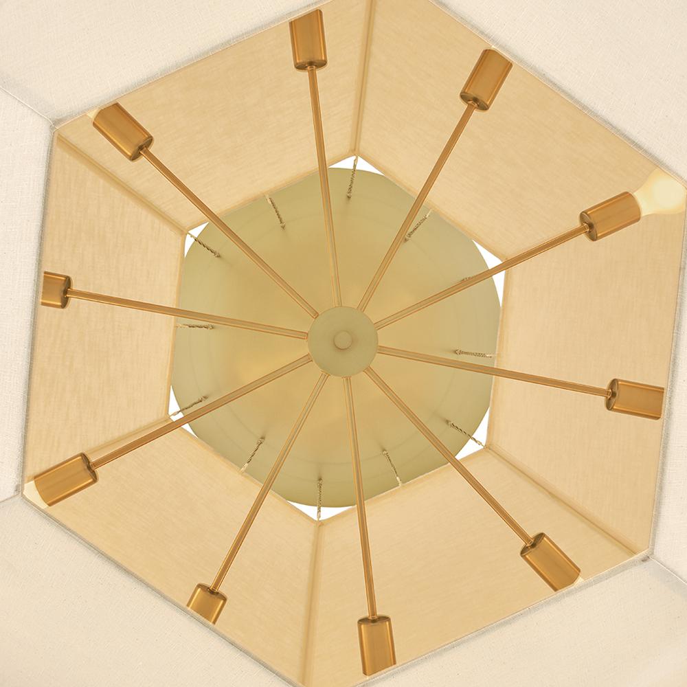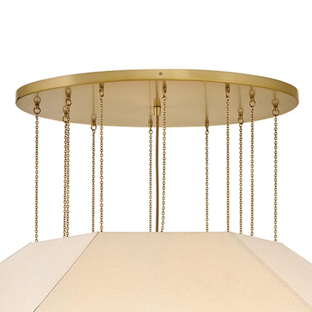 Elegant yet edgy, Lyla’s geometric Oatmeal Linen shade with a textured, wrapped middle band is suspended from refined Lacquered Brass micro-chains – inspired by delicate jewelry designs. A Lacquered Brass canopy and dimmable lamping add subtle warmth and a sophisticated atmosphere to the surrounding space.