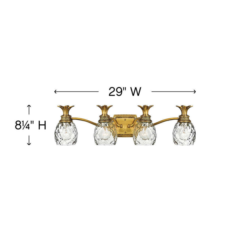 A Hinkley classic, the ornate Plantation collection features exceptional pineapple shaped, clear optic glass that makes a noble statement. The elaborate, decorative cast detailing is accentuated by its lush finish.