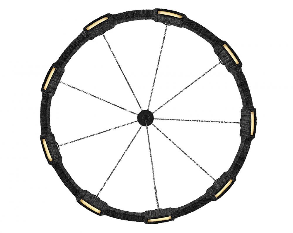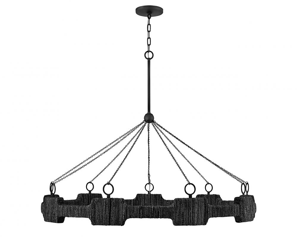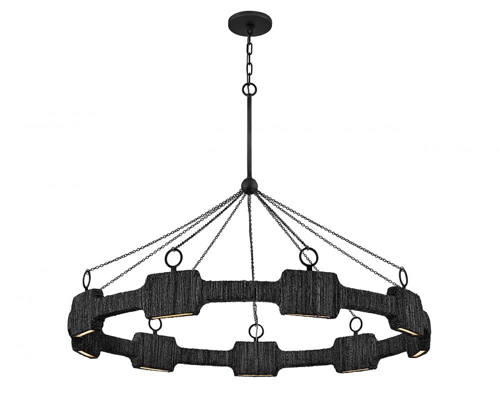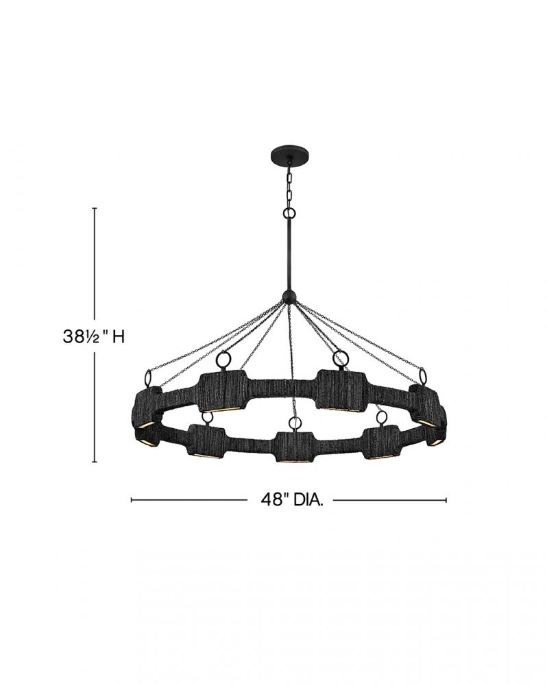 Raffi's coastal bohemian vibe is balanced by its distinctively modern shape. A unique LED design offers abundant light, while a slim frame hand-wrapped in natural reeds provides unexpected texture. Bold Carbon Black or Burnished Gold finishes perfectly complement any color palette.
