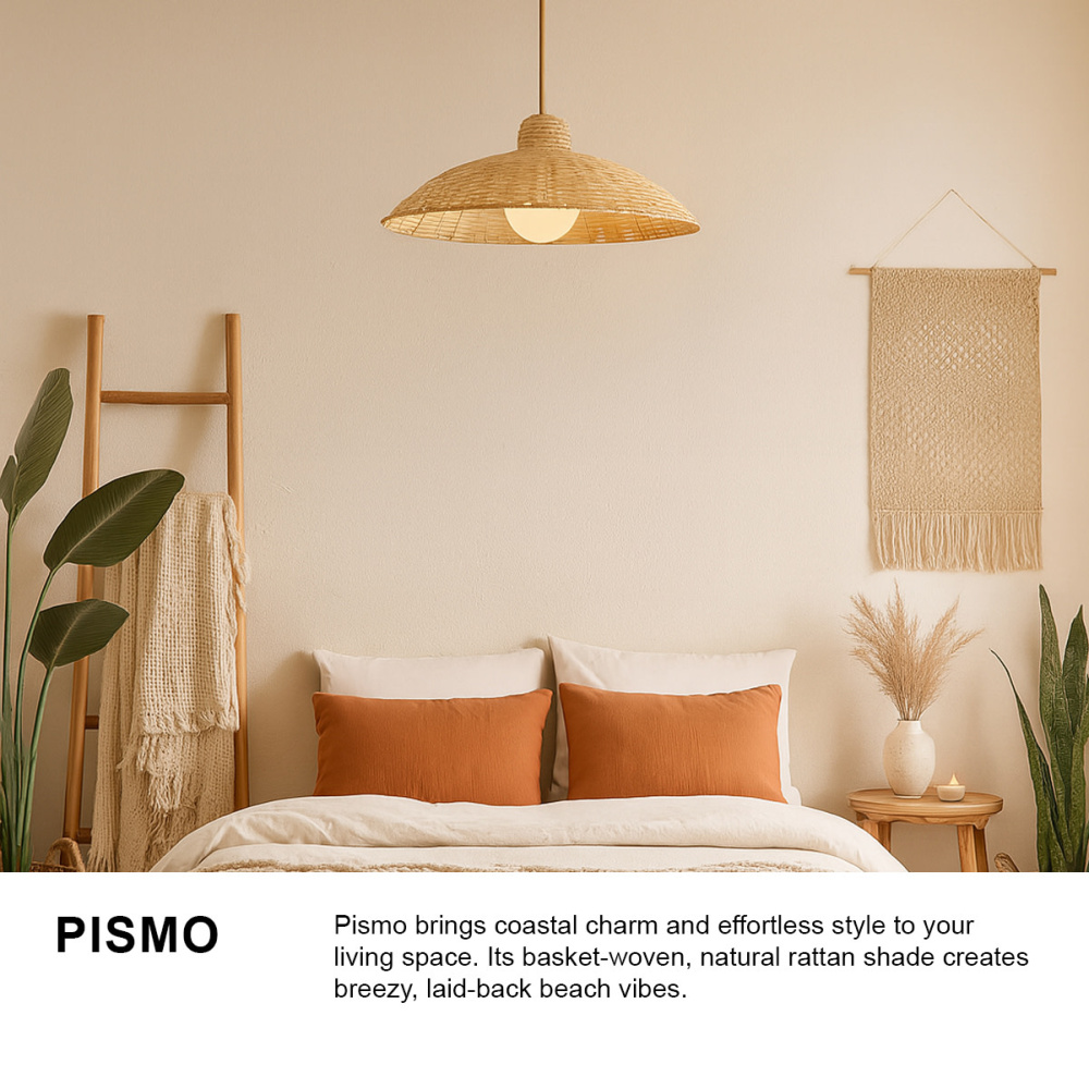 Pismo brings coastal charm and effortless style to your living space. Its basket-woven, natural rattan shade creates breezy, laid-back beach vibes.