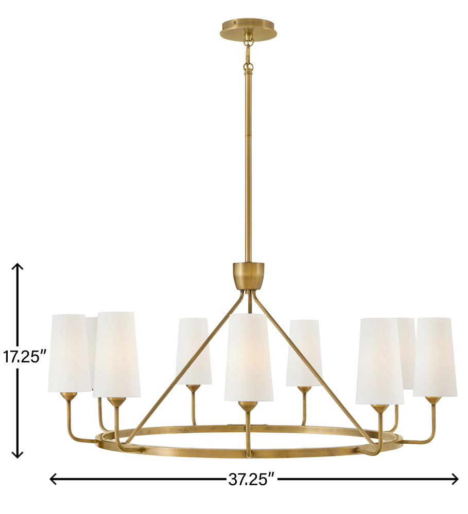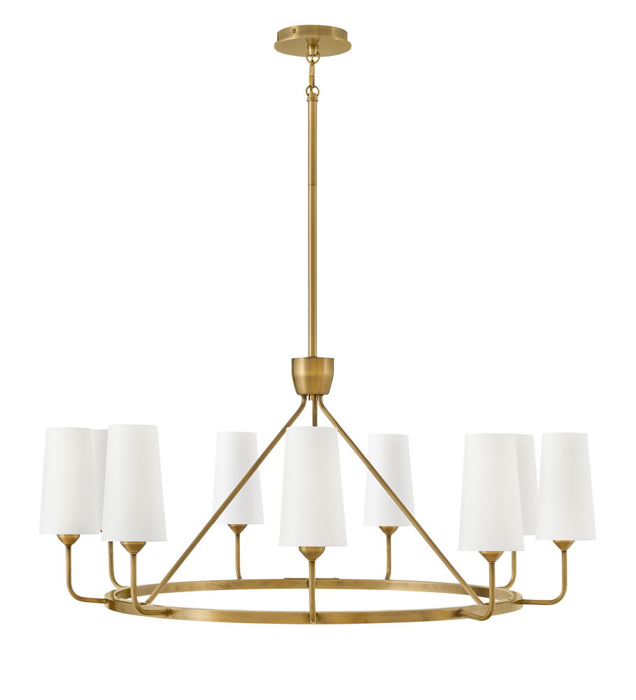 Lewis offers traditional charm paired with updated, transitional elements. Tall natural paper shades feature fine stitching detail against a Heritage Brass or Black Oxide finish to enhance timeless interiors.
