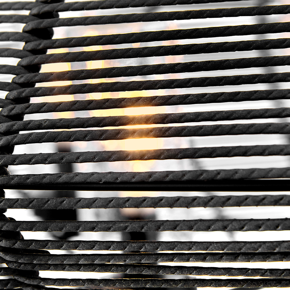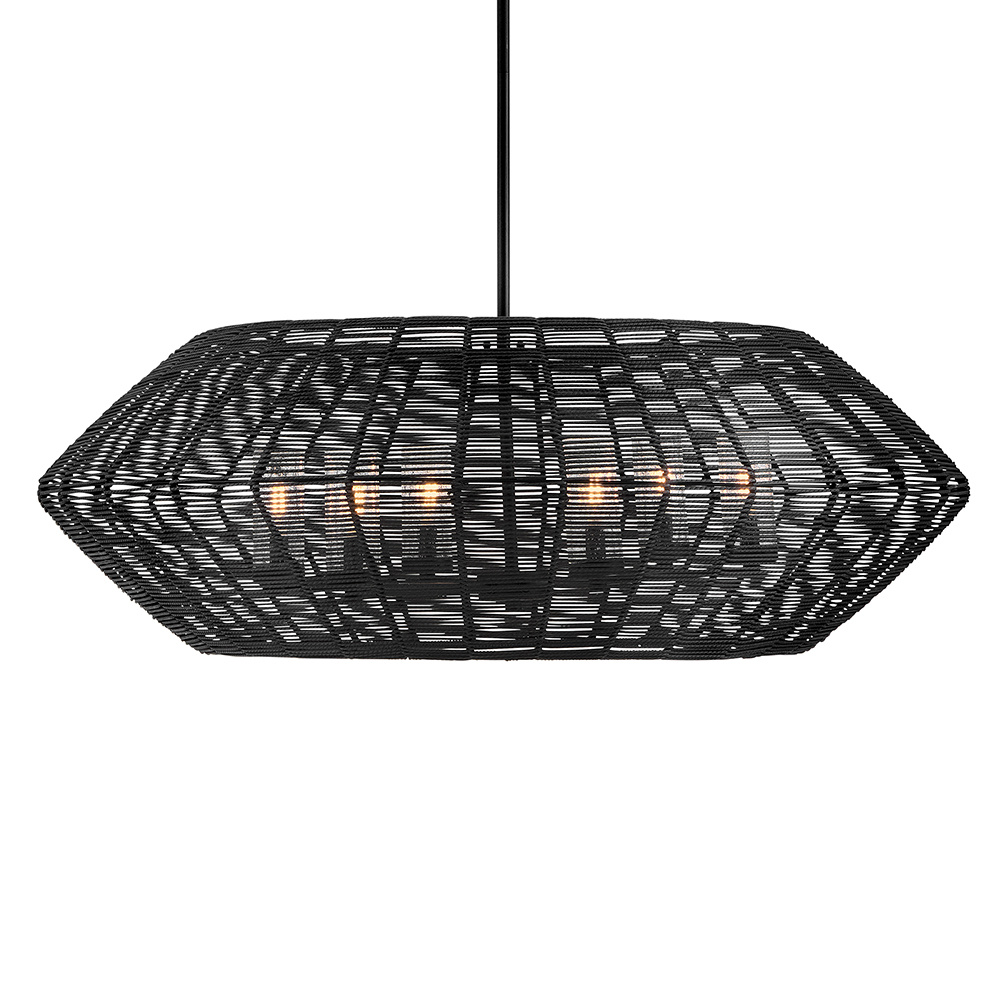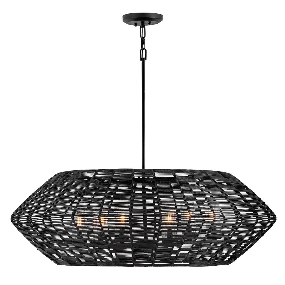Luca's coastal vibe is permeated with a slightly exotic edge. The bold silhouette showcases a robust, weather-resistant, woven drum shade and candelabra lamps enclosed in clear, seedy glass for plenty of functional light. Offered in a variety of finish options. Luca is part of the Lisa McDennon Collection.