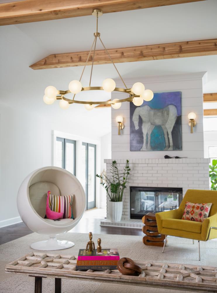 A mid-century modern vibe with a glimpse of Hollywood glam? Yes, please. Orla brings the dimensional interest with multiple plays on circles and globes. The streamlined profile is simple, with each individual element contributing to the overall silhouette in a big way. Available in Lacquered Brass or Black with Lacquered Brass accents, Orla makes a prominent style statement. G-style bulbs recommended.