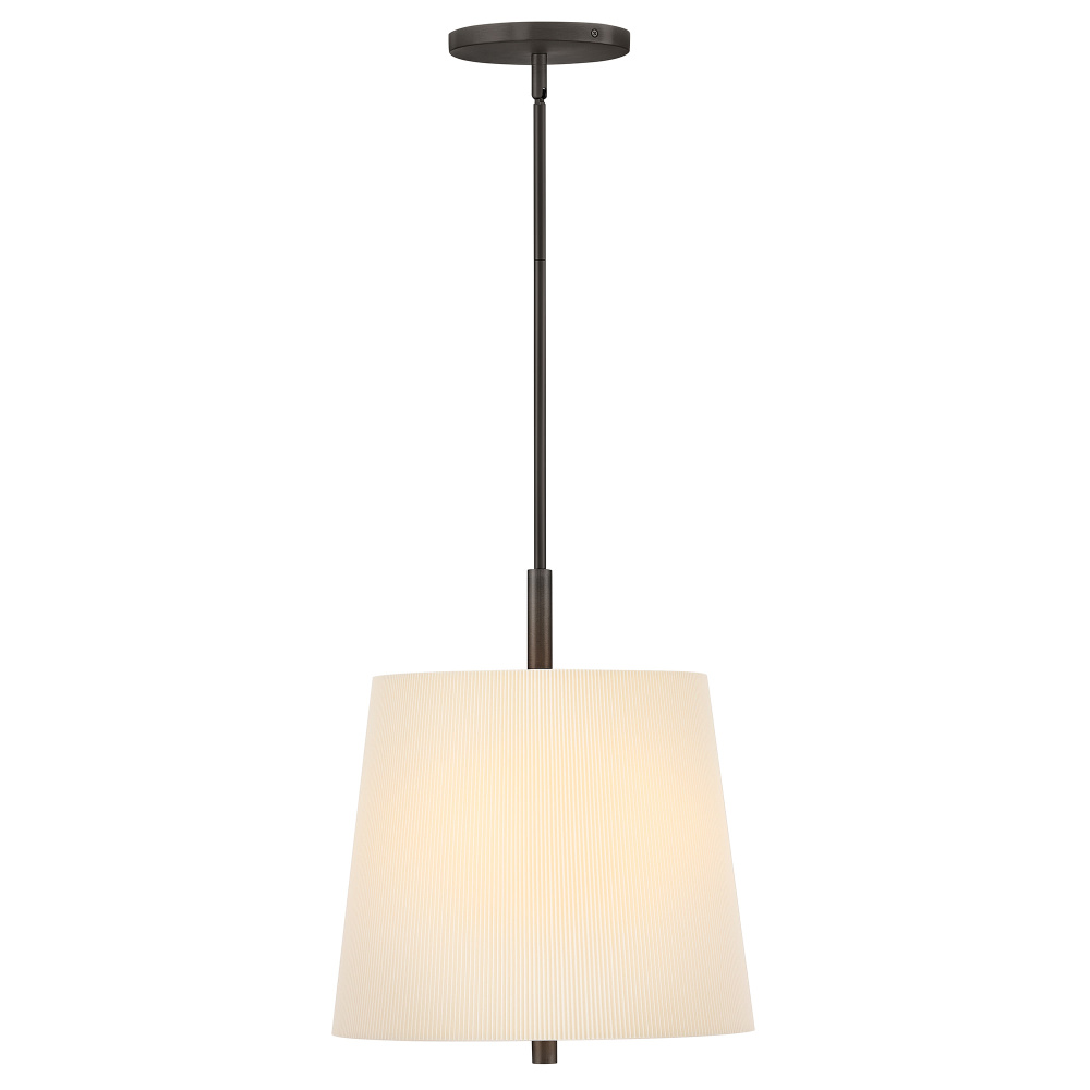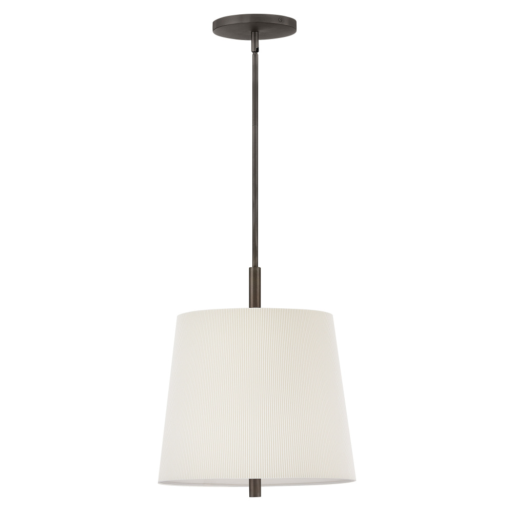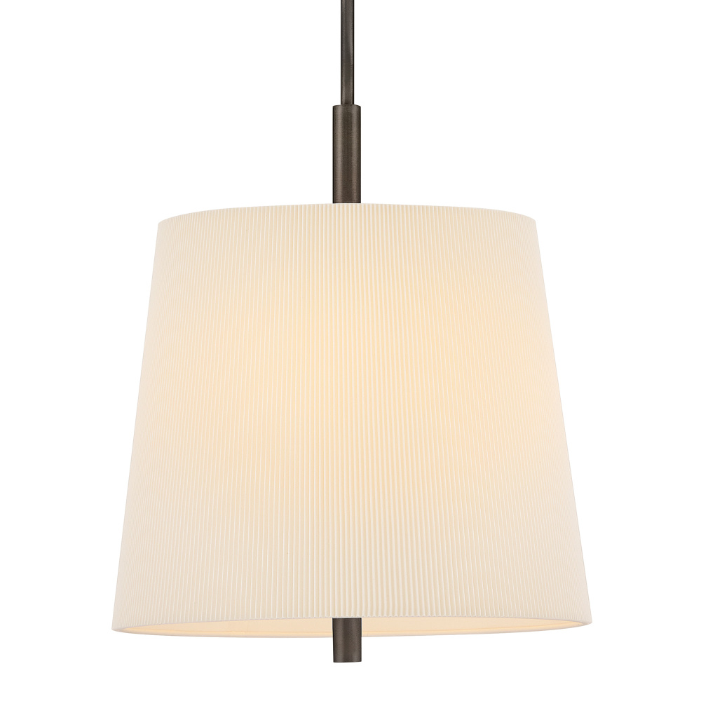 A structured design with a touch of Americana, Clive’s tailored shade features a micro-pleated texture that adds a refined feel to the slightly tapered silhouette. A slim stem grounds the off-white fabric with a contrasting Heritage Brass or Slate Bronze finish.