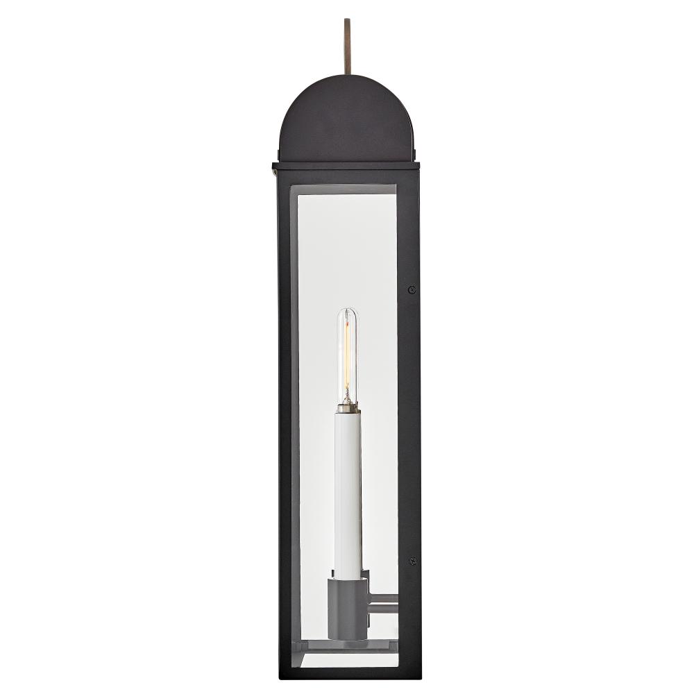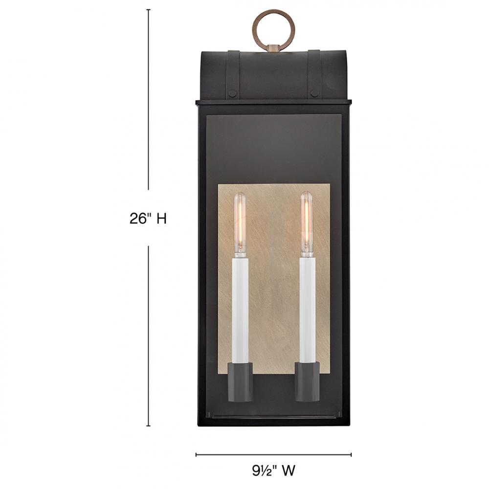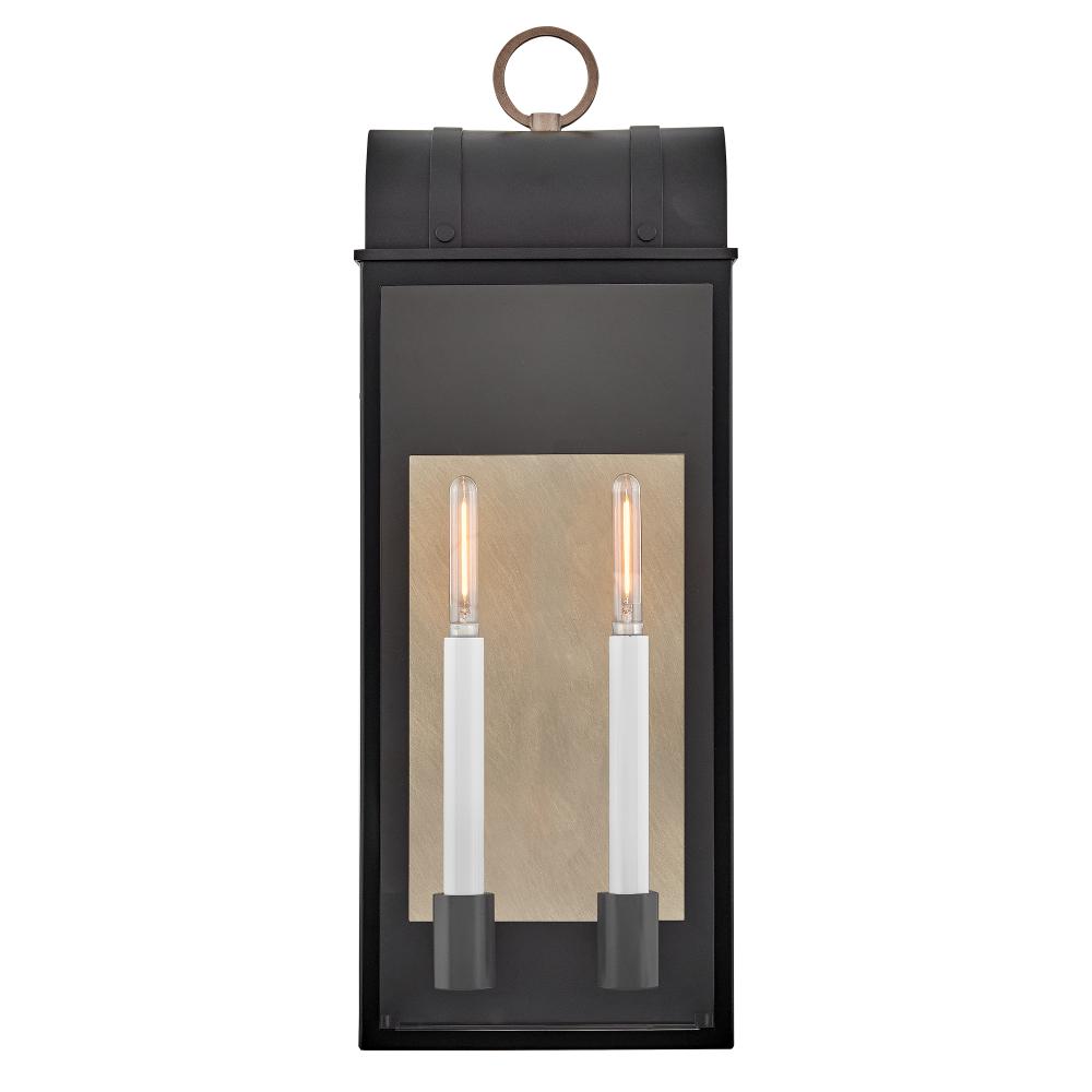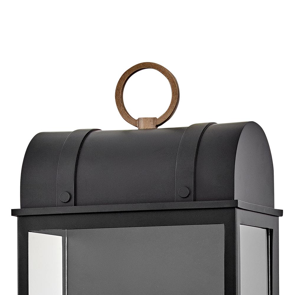 Inspired by traditional colonial lanterns, Campbell’s carriage house styling complements classic architecture accentuated by a bold arched roof and a cast top ring. Candelabra lamps with contrasting warm white candle sleeves are enhanced by a Black with Burnished Bronze finish and a reflective backplate.