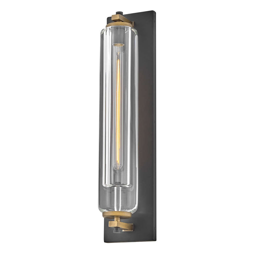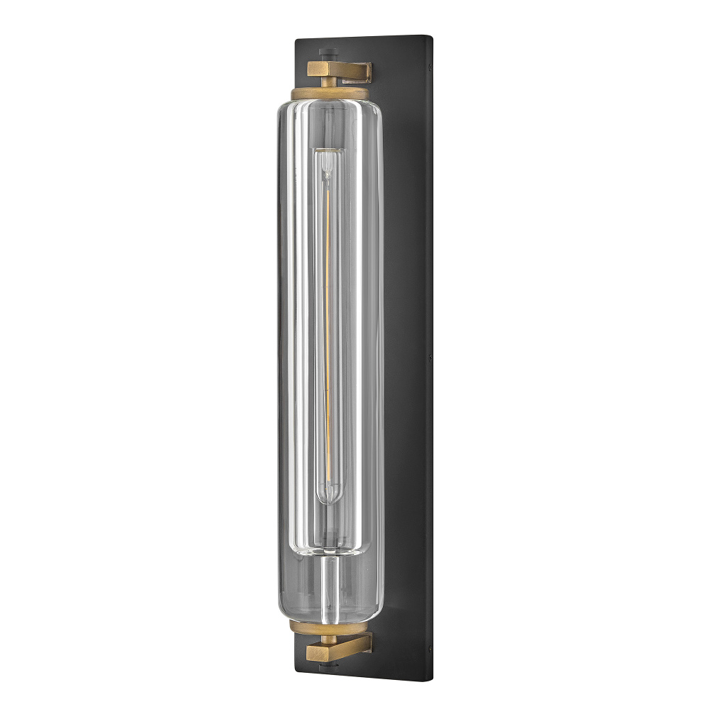 Solid and robust, Lourde’s name says it all. Heavy, layered glass cast in soft cylindrical shapes creates captivating reflections and refractions to illuminate any outdoor or indoor space with a warm glow. The modern, industrial details paired with the Black and Heritage Brass finishes make a bold statement among any aesthetic.