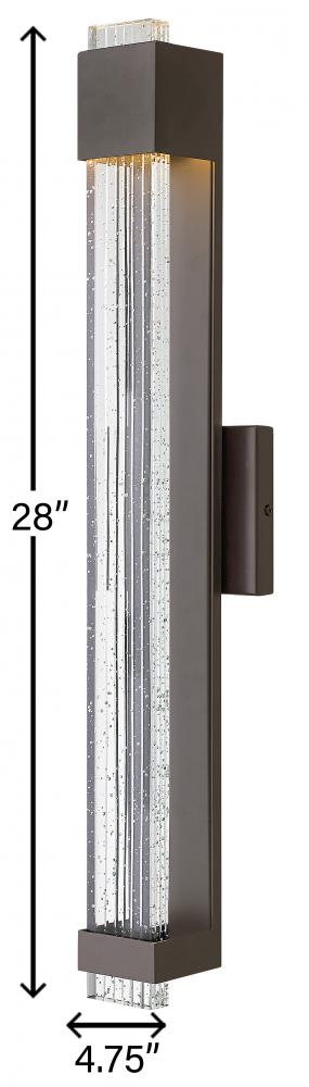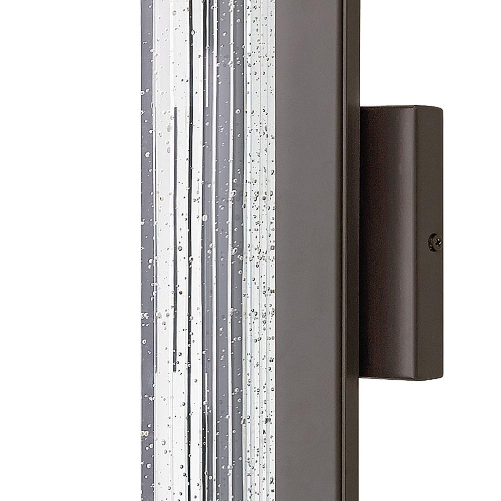 Glacier’s impressive form merges industrial and contemporary design elements into a breathtaking silhouette. A substantial block of clear seedy glass with etched grooves brilliantly channels light from the high-performance LED, which is held in suspension by the powder-coated aluminum frame.