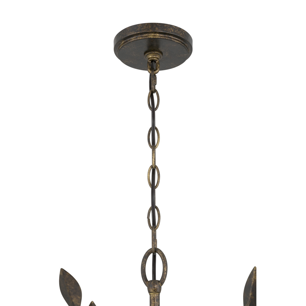 The Savoy House Laska 5-light chandelier, created in collaboration with award-winning interior designer and TV host Breegan Jane, celebrates nature’s sculptural beauty. Slim, gracefully branching arms are adorned with delicate leaf details, all finished in hand-painted Enchanted Bronze for a luminous, artisanal look. Laska is 25.5" high and 24" wide. It uses five candelabra size bulbs of up to 60 watts per bulb. Bulbs not included. Comes with 120" of hanging chain.