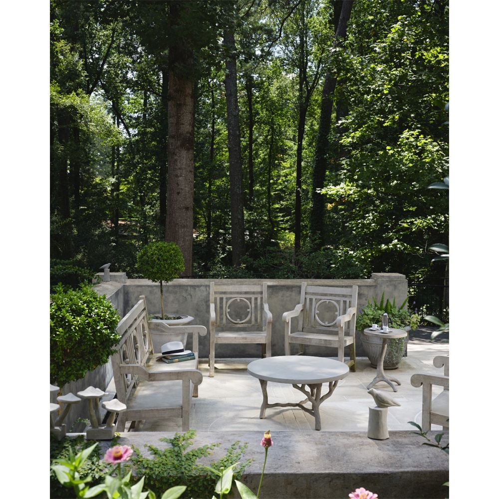 The Leagrave Large Bench is sturdier than its teak counterparts. Made of concrete, this beautifully substantial, outdoor friendly cement bench in a Portland finish has a patina that will mellow with age. This makes the tan bench as timeless in style as its predecessors. There are a number of pieces in the Leagrave family of furnishings.