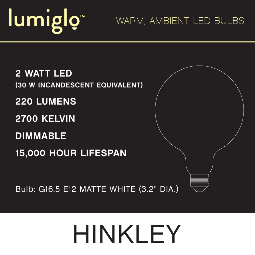 To create superior, softer light that sets the scene in any indoor or outdoor setting, Hinkley’s Lumiglo™ LED bulbs feature unique filament technology designed to cast a warm ambient glow. Dimmable functionality provides full control over brightness, allowing you to craft an atmosphere that perfectly accentuates your space.