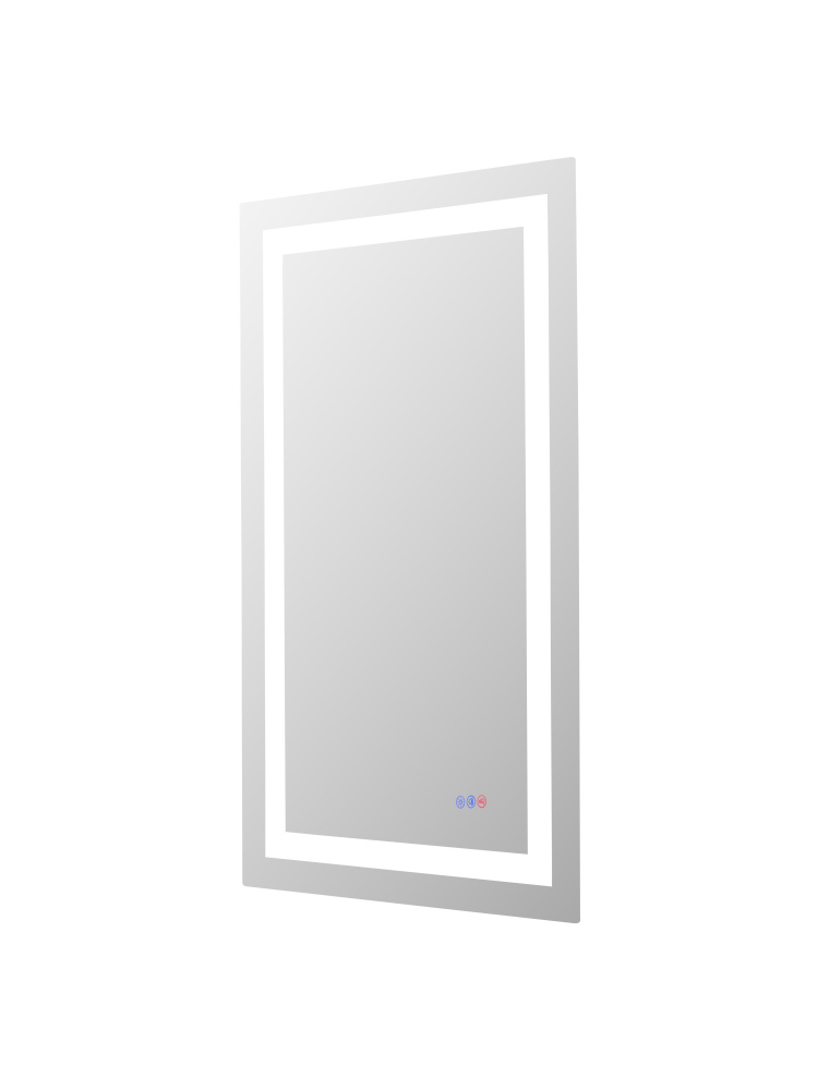 Redefine your daily routine with this ultra-modern LED mirror, designed to offer the perfect blend of style and functionality. Featuring both front and back illumination, this mirror provides a soft yet powerful glow that enhances your space with a luxurious ambiance. The adjustable color temperature (ranging from 3000K to 6400K) allows you to customize the warmth or coolness of your lighting, while the dimmable function lets you create the perfect brightness level. With a 90 CRI rating, this mirror ensures accurate color representation, making it perfect for grooming, makeup application, or daily self-care. The built-in defogger keeps your reflection clear and can be turned on or off at your convenience. Thanks to the touch sensor controls, adjusting your mirror's settings is effortless, and the memory function saves your last preferred settings for a seamless experience. Designed for versatile installation, this mirror can be hung vertically or horizontally using the included French cleats, making it a stunning and adaptable addition to any bathroom or vanity. It can be hardwired or connected to a wall switch for your convenience. Elevate your space with a mirror that not only reflects your image but also enhances your everyday routine with smart, modern lighting.